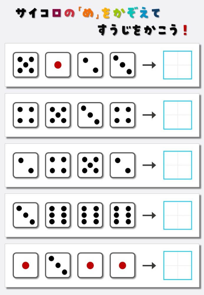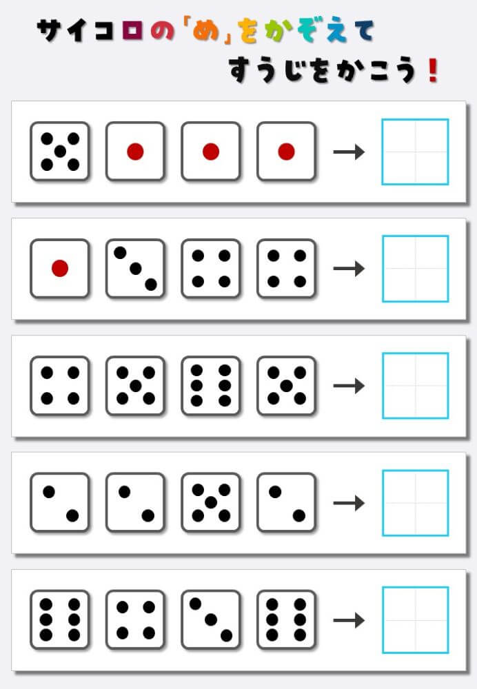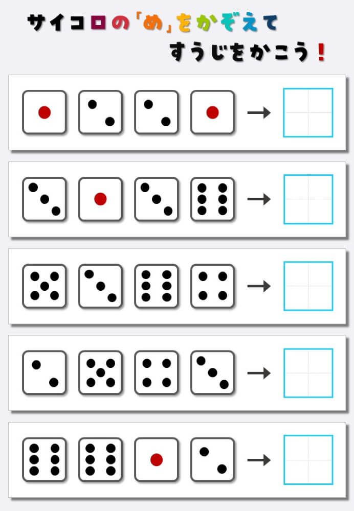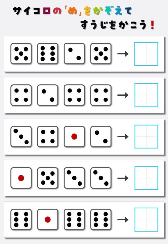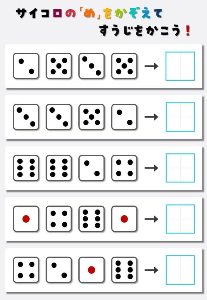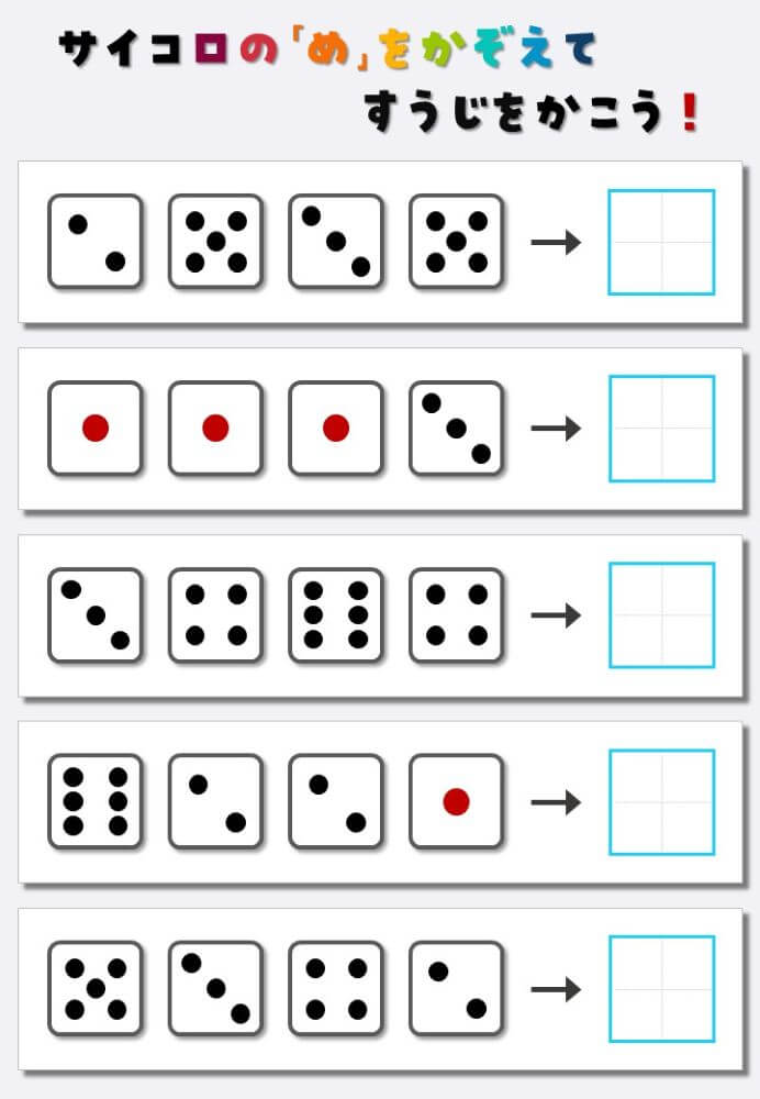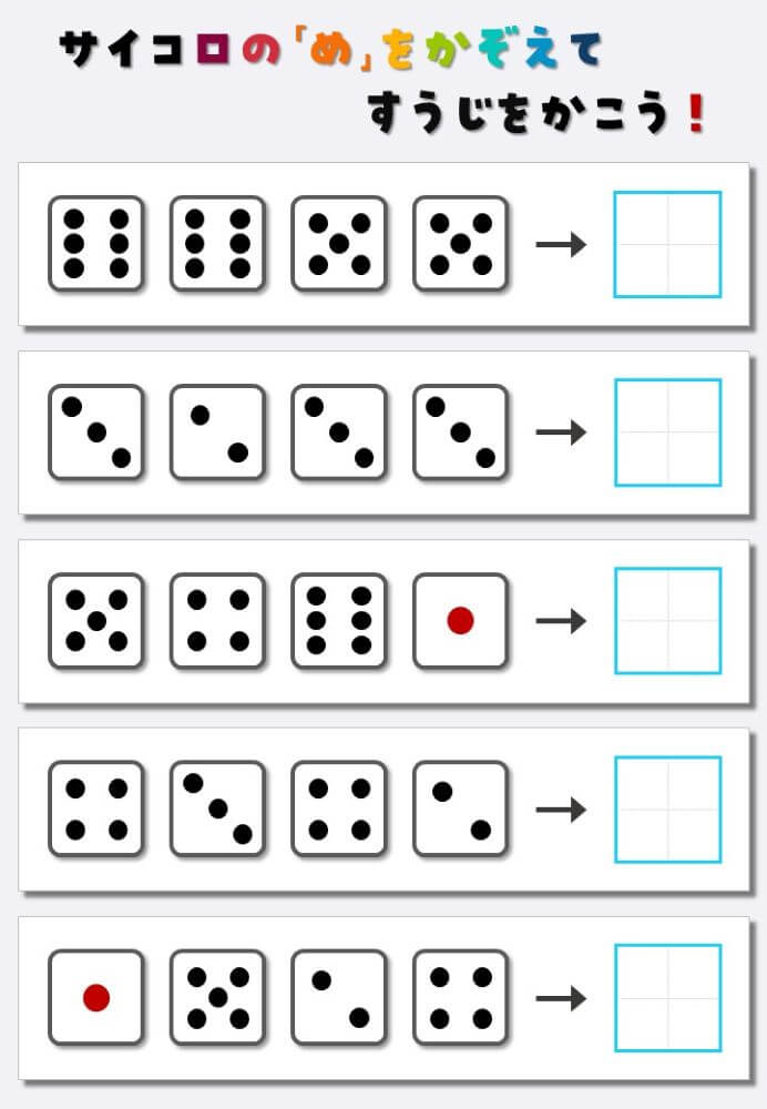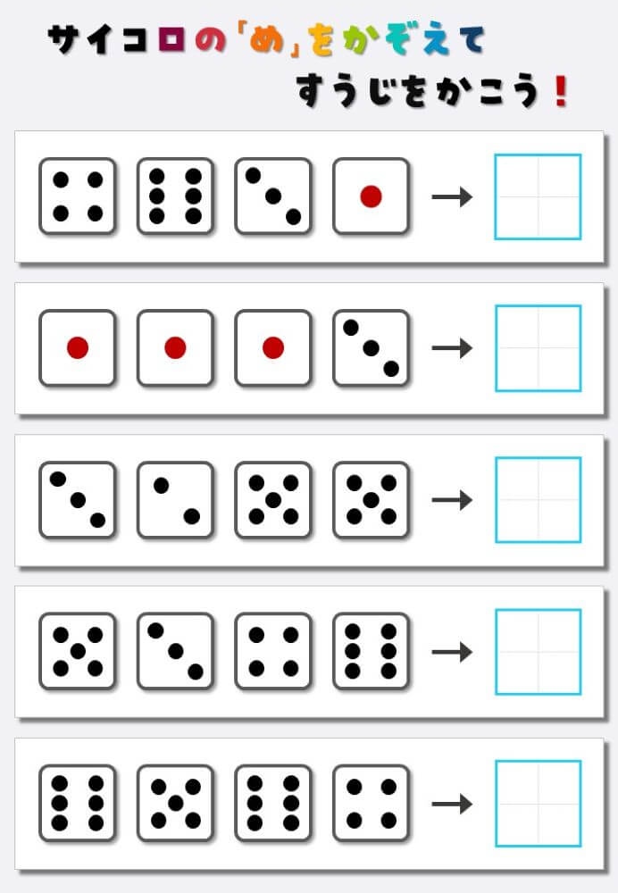 4個のサイコロの目を数えて書く:4