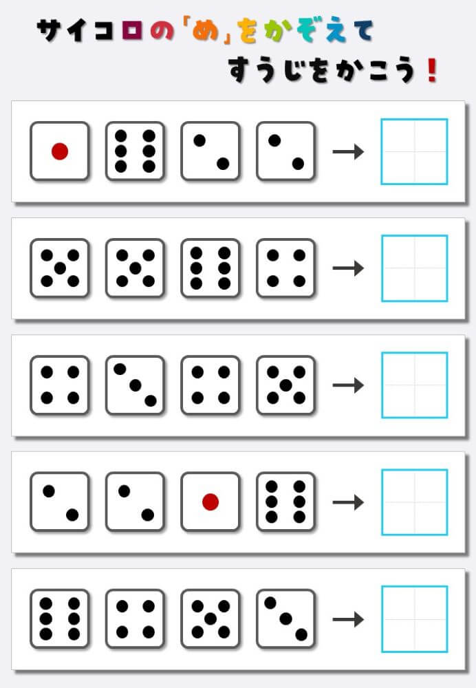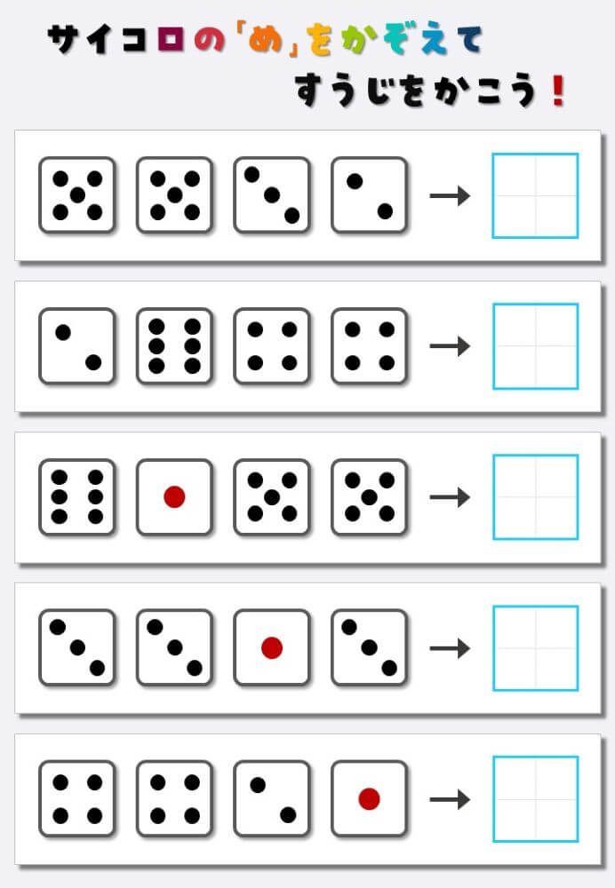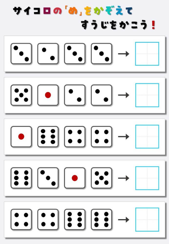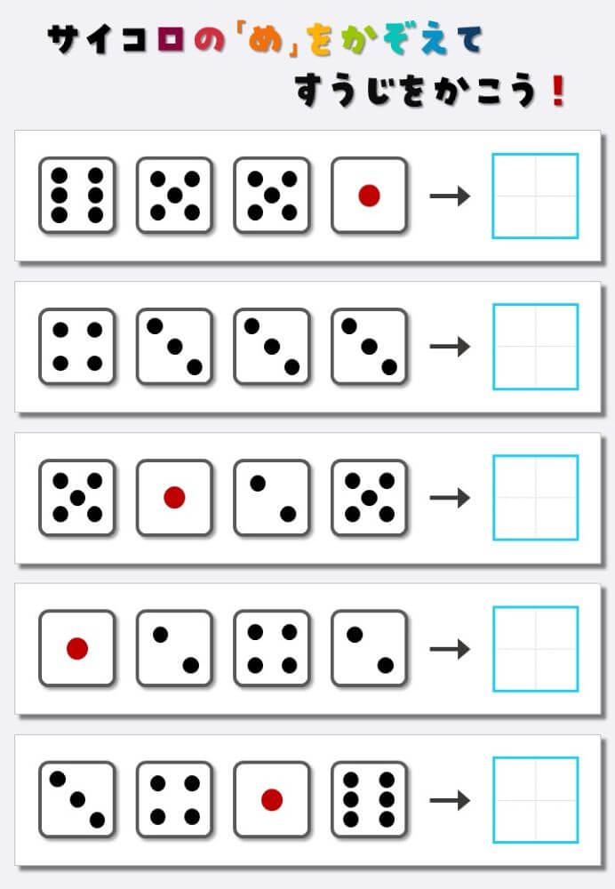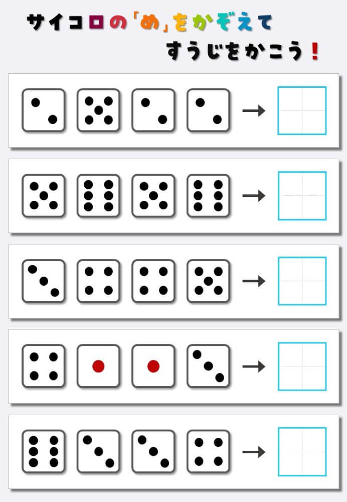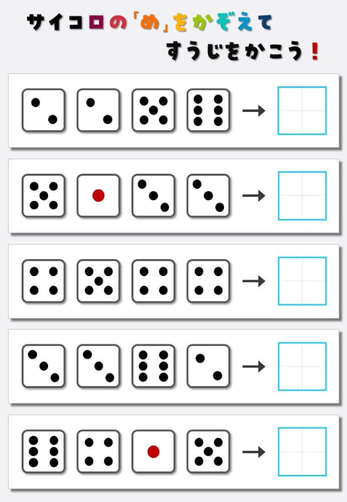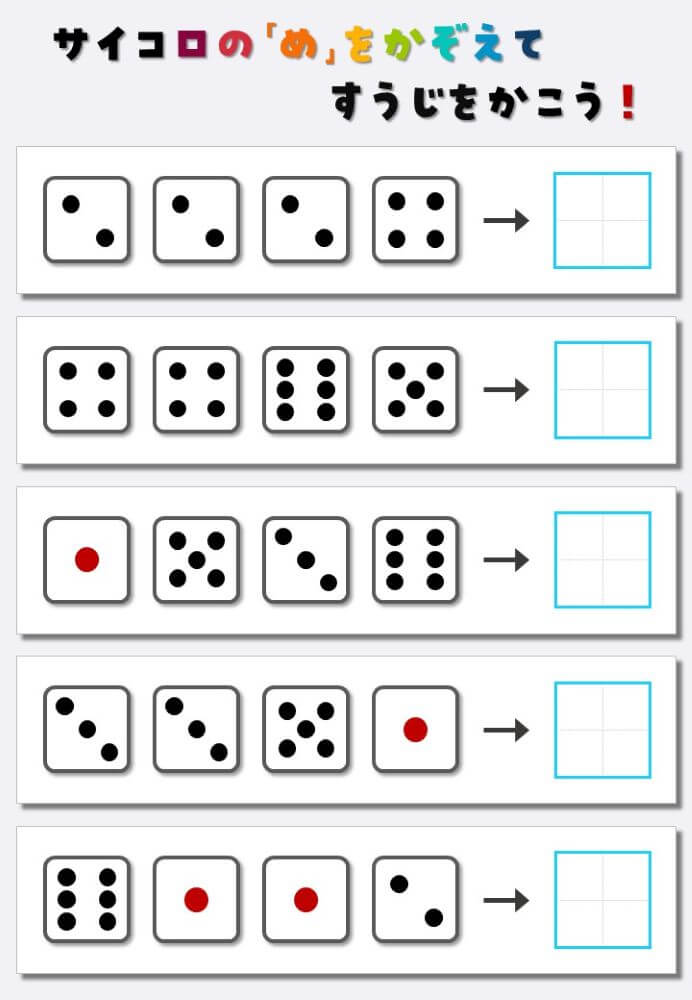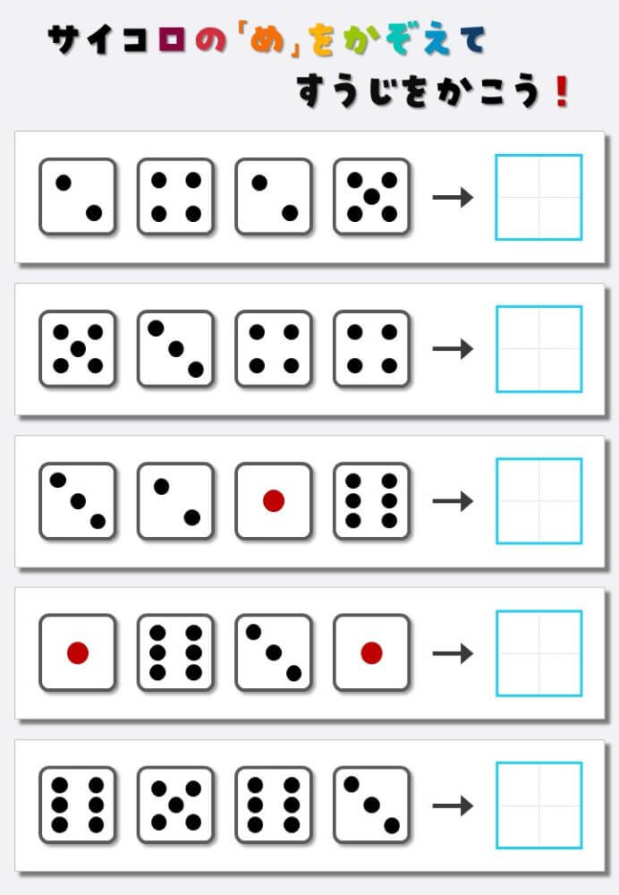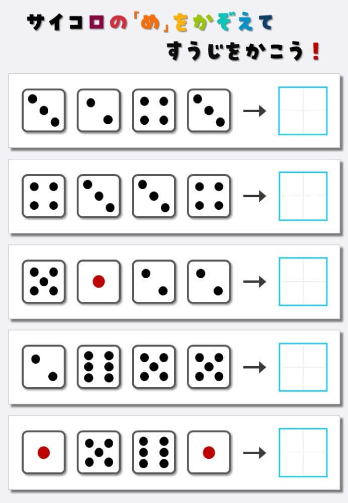 4個のサイコロの目を数えて書く:4