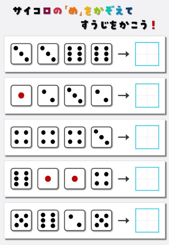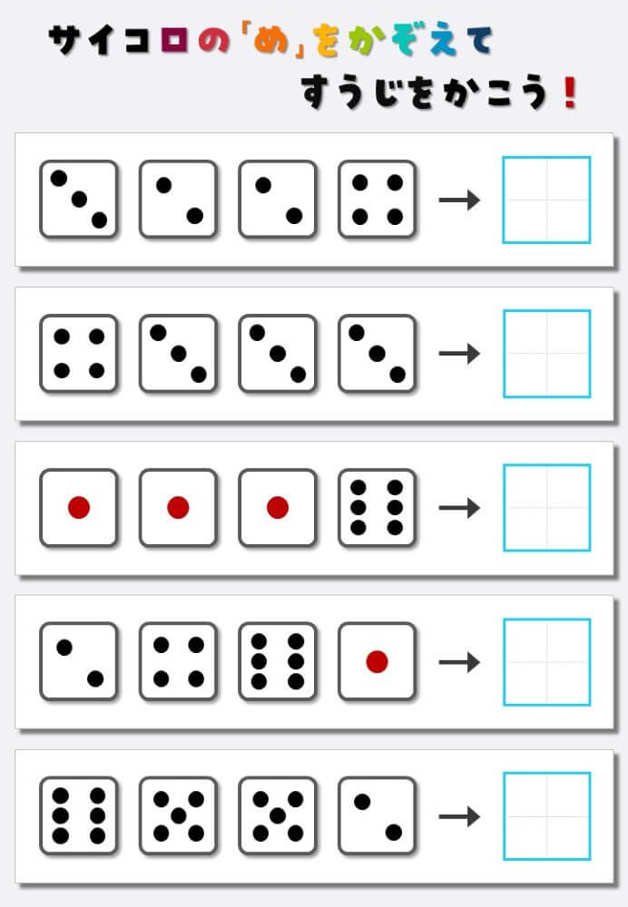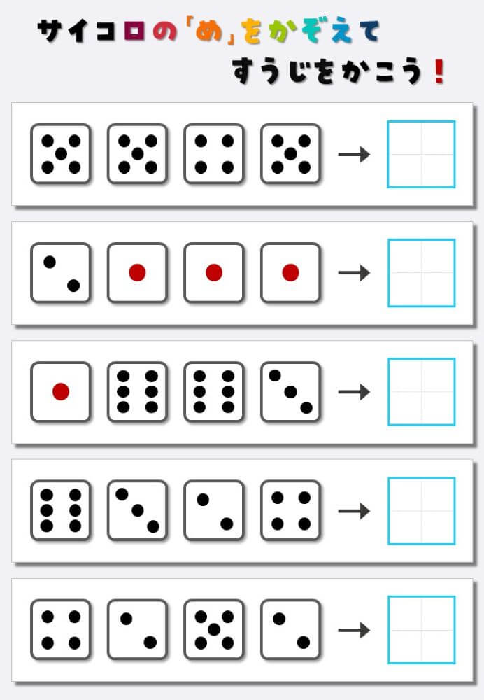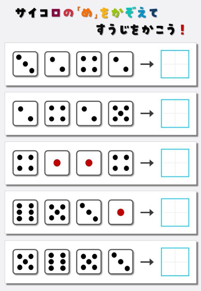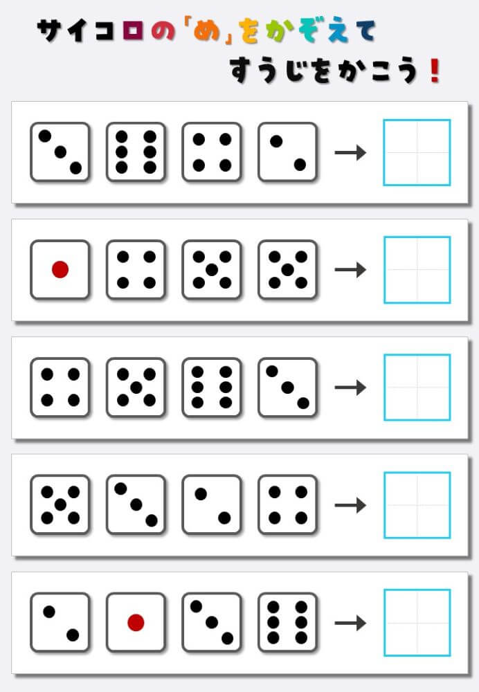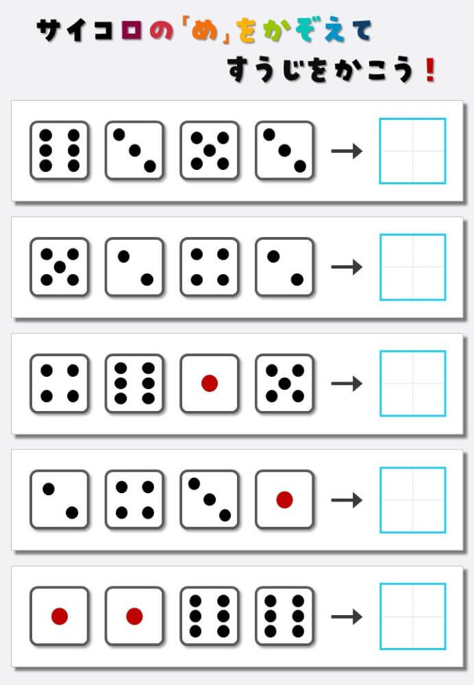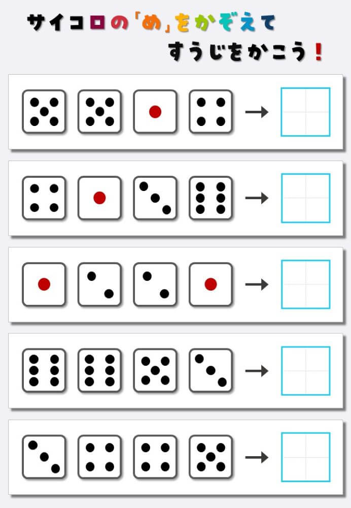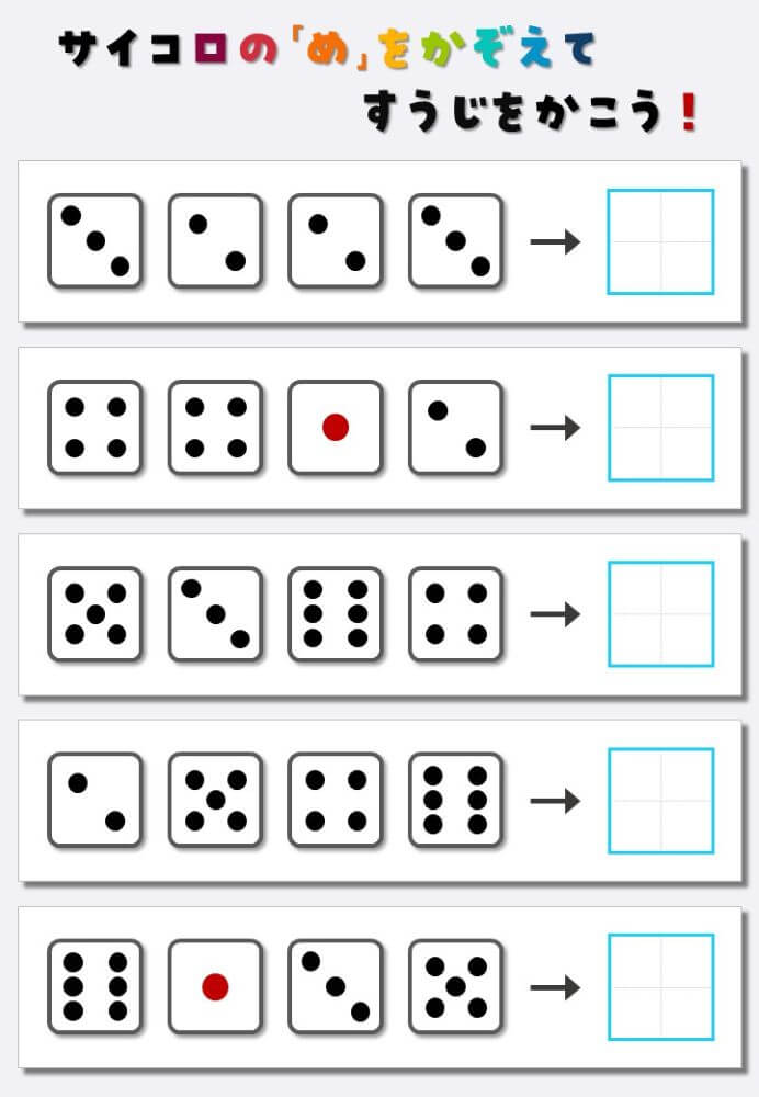 4個のサイコロの目を数えて書く:4