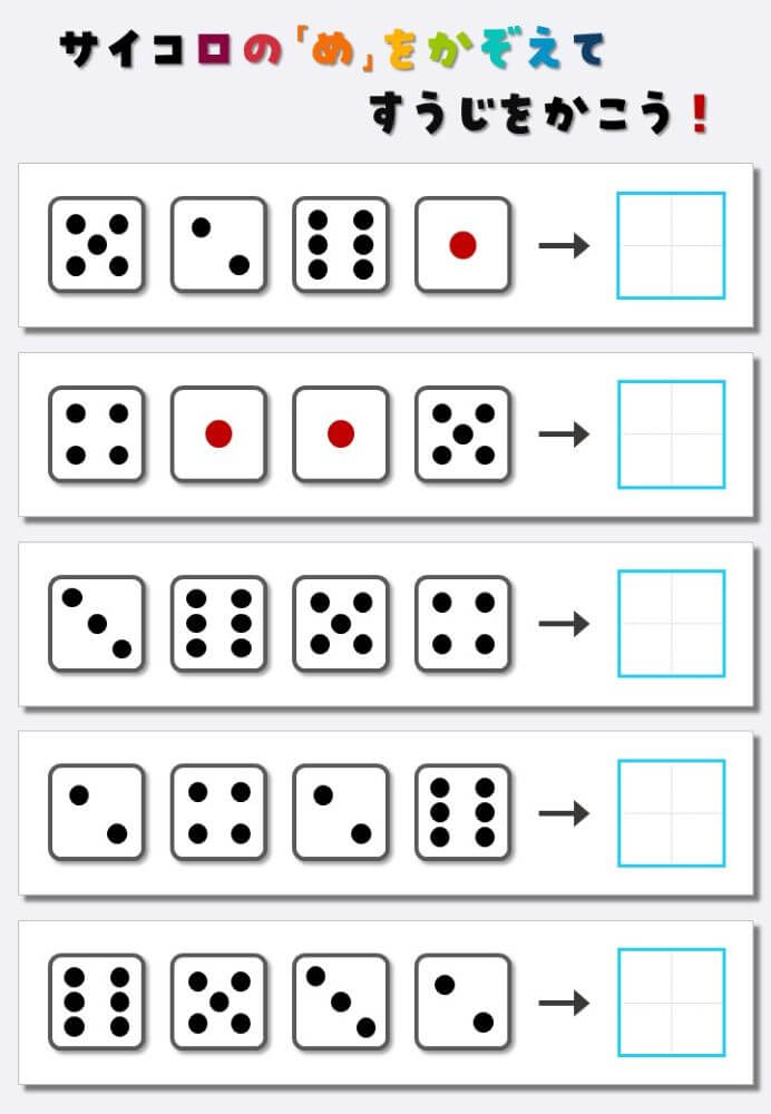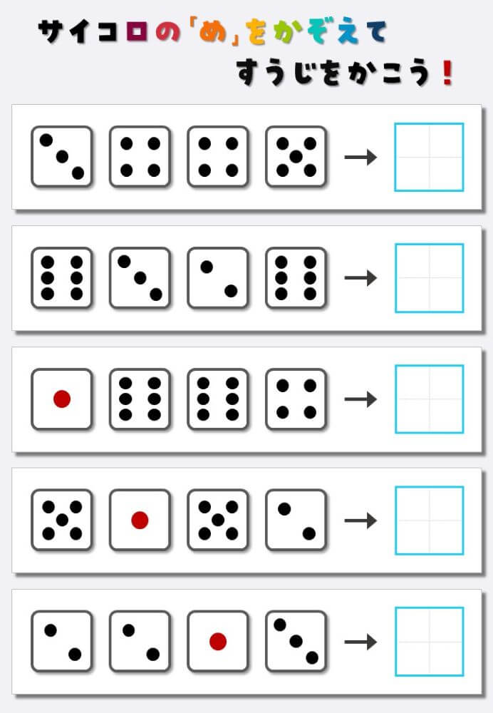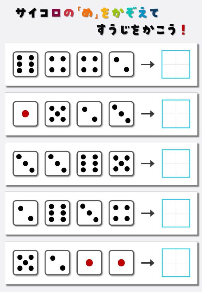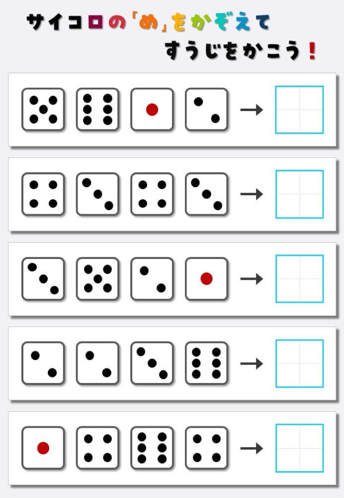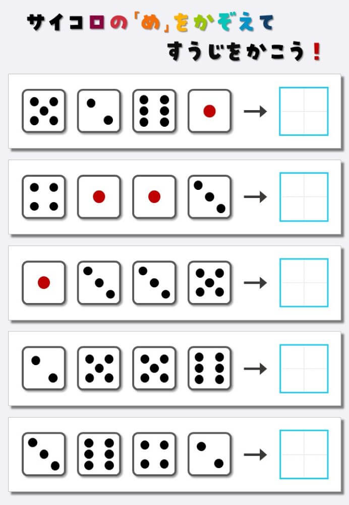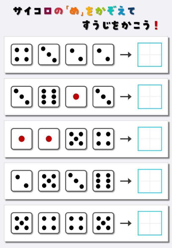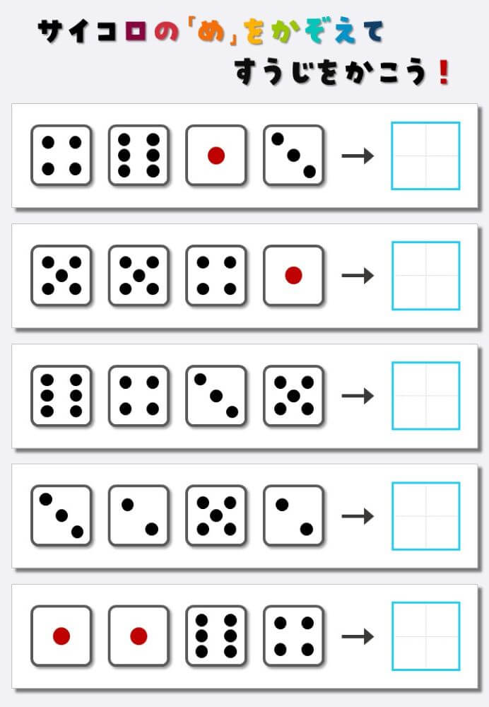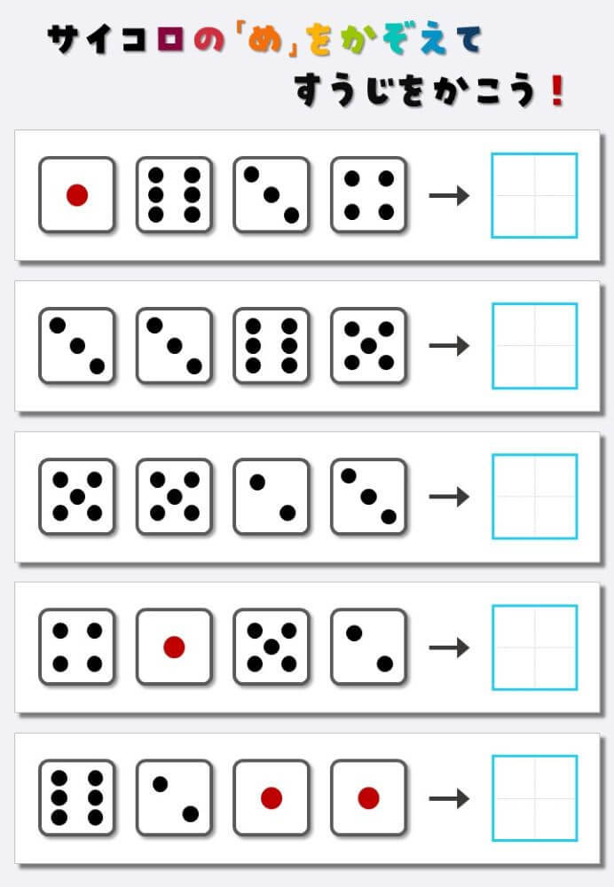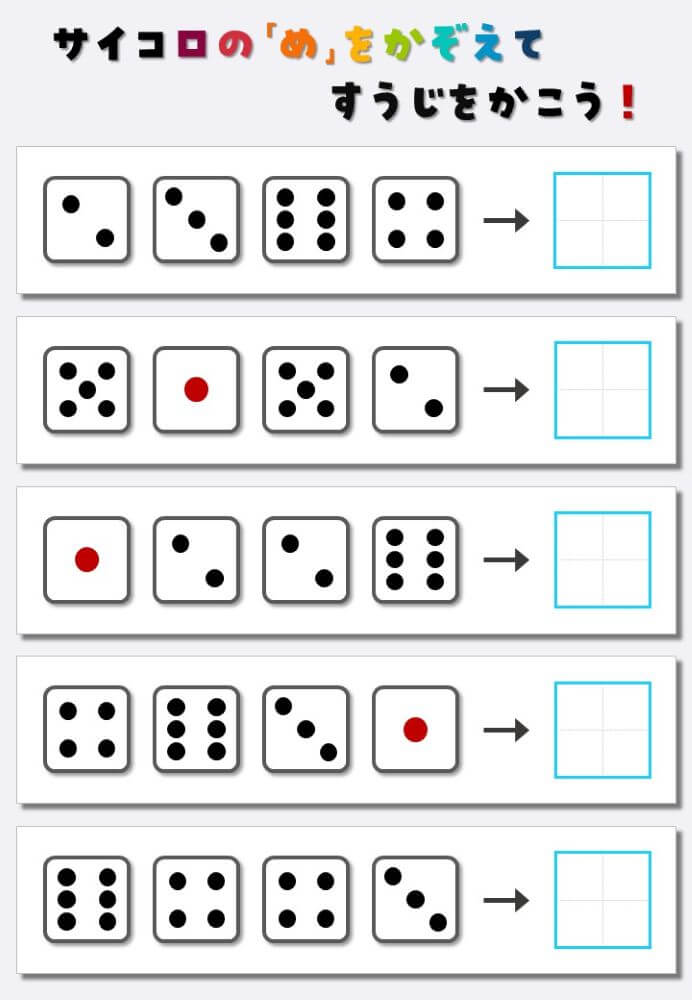 4個のサイコロの目を数えて書く:4