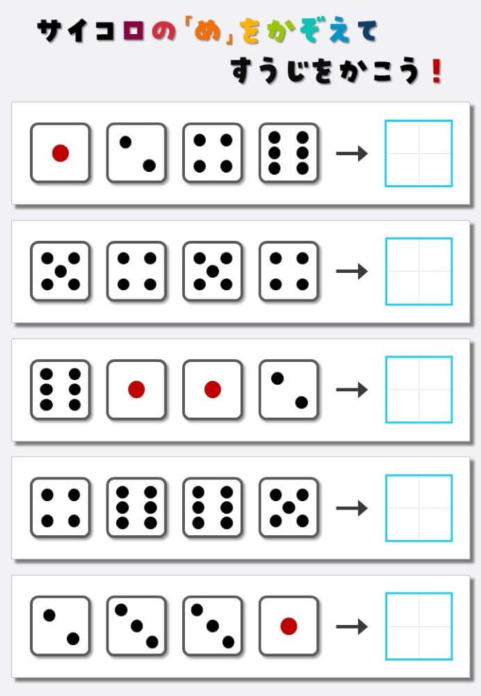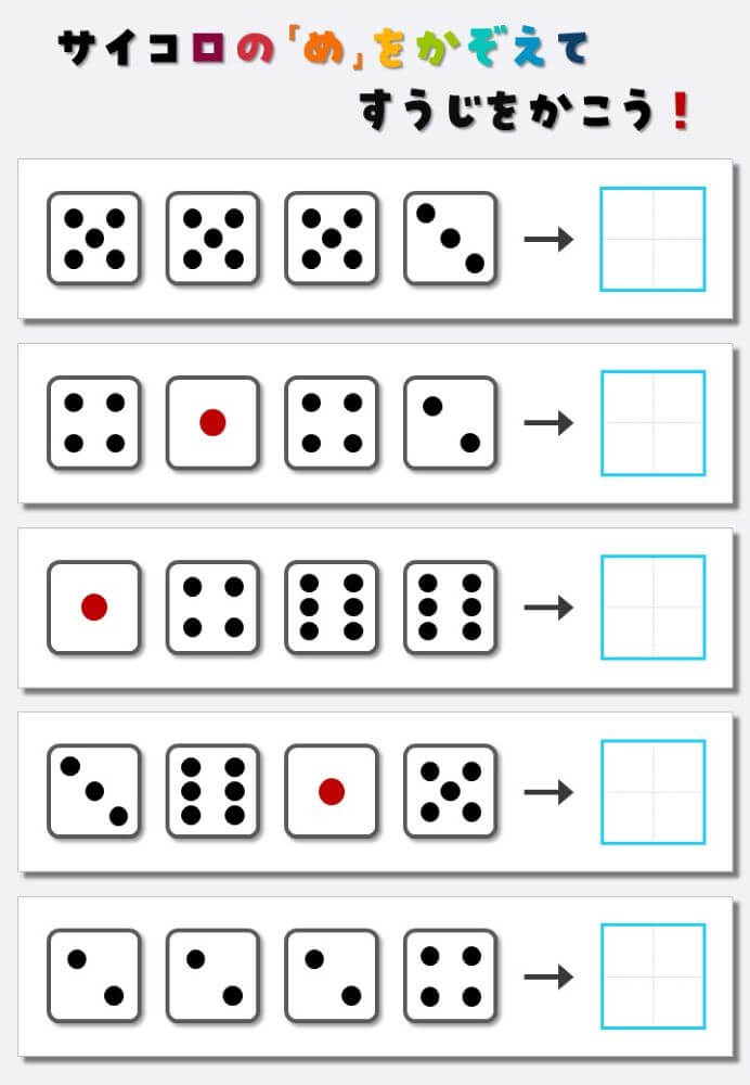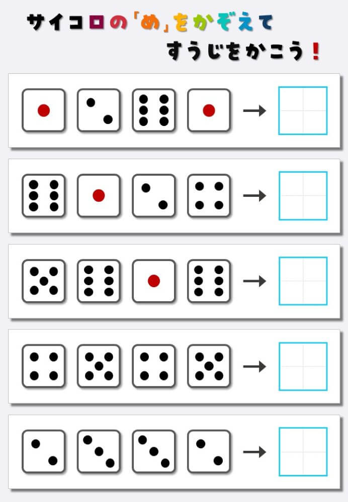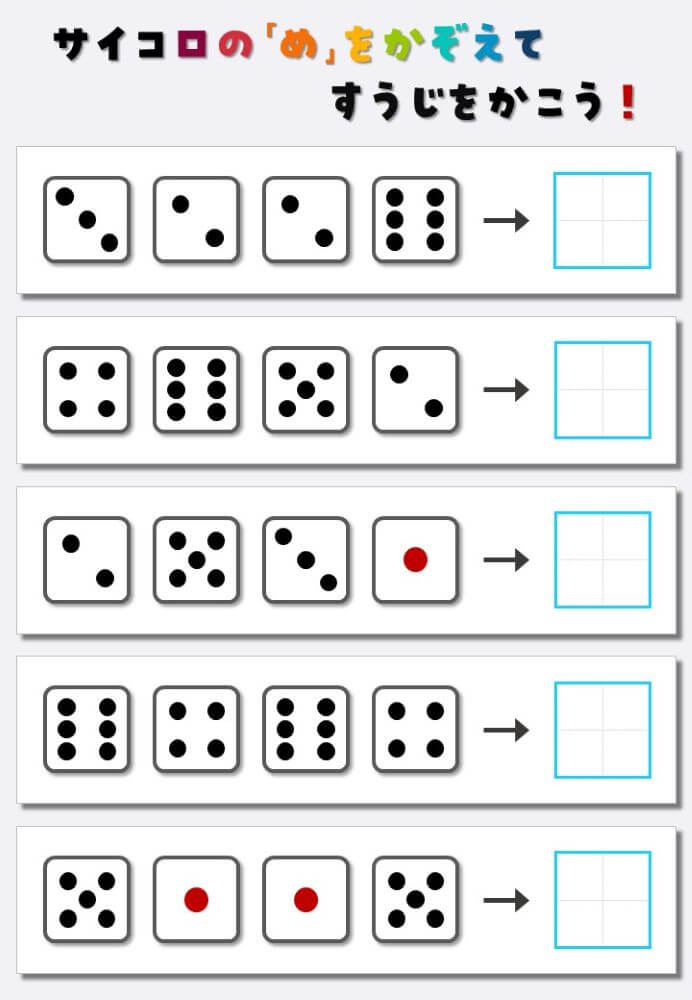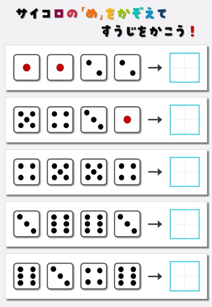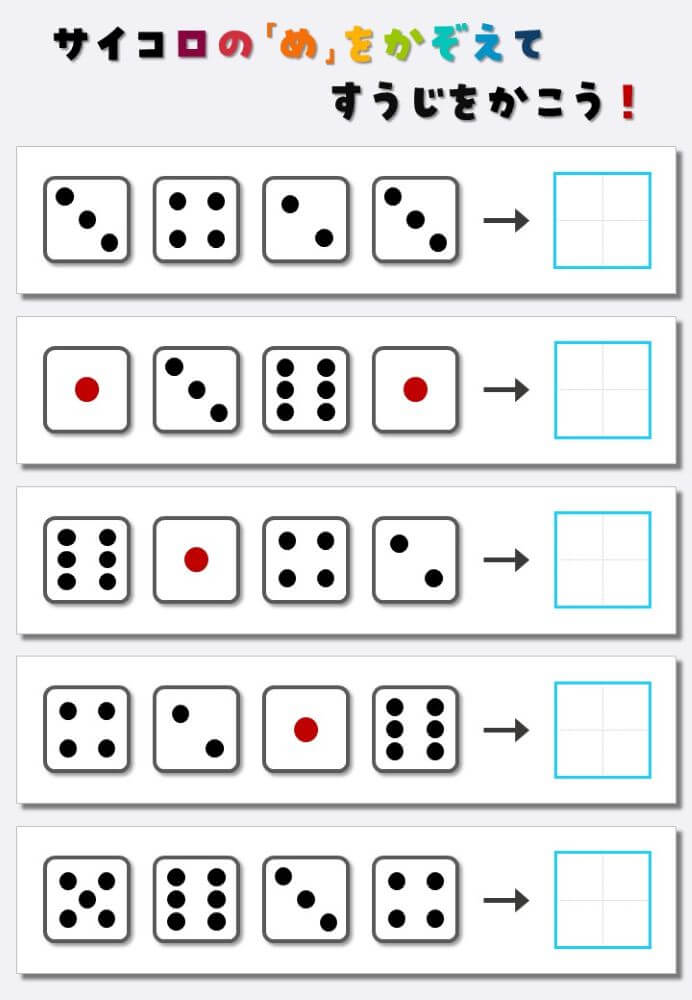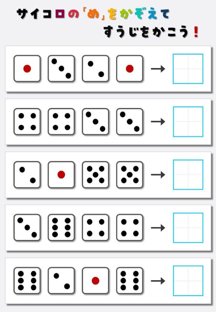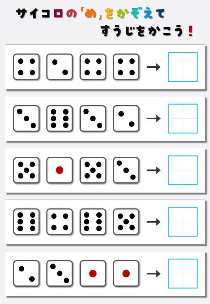 4個のサイコロの目を数えて書く:4