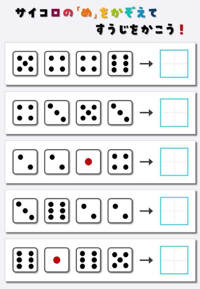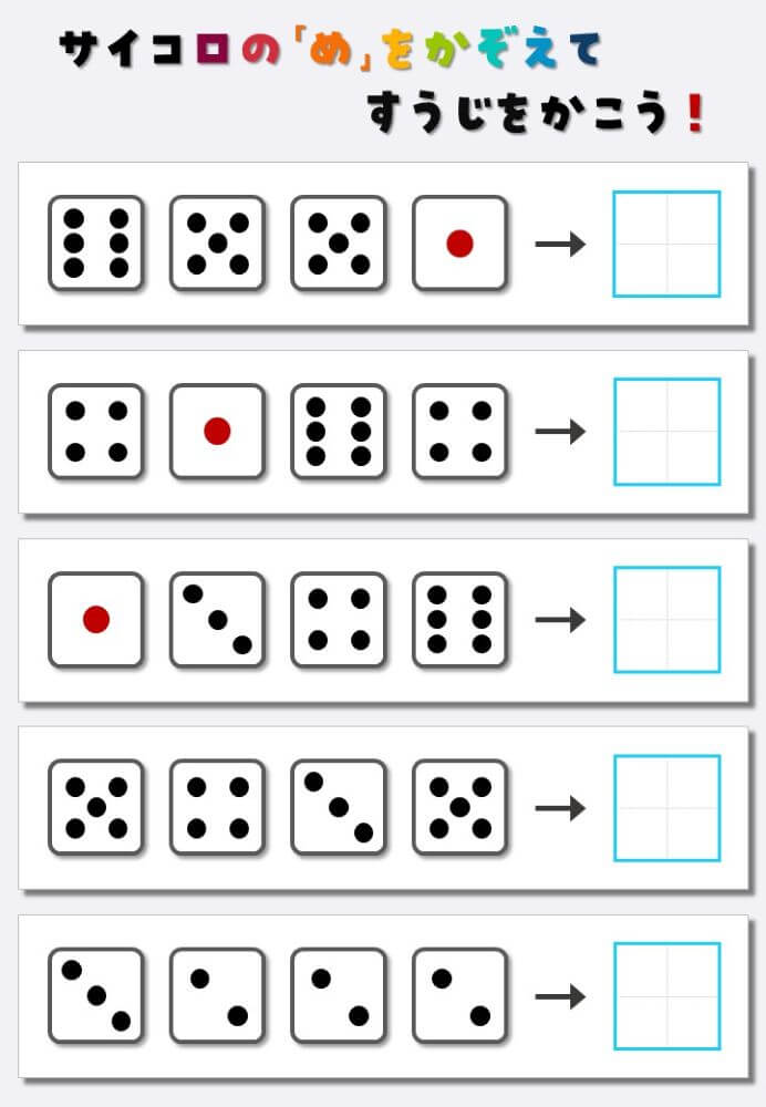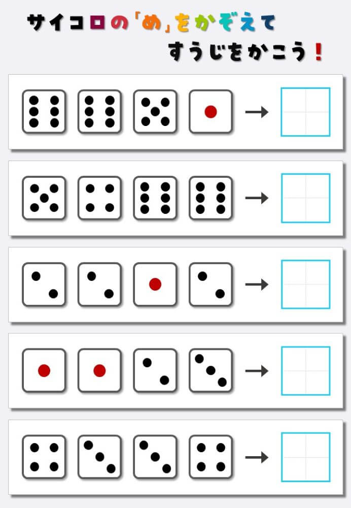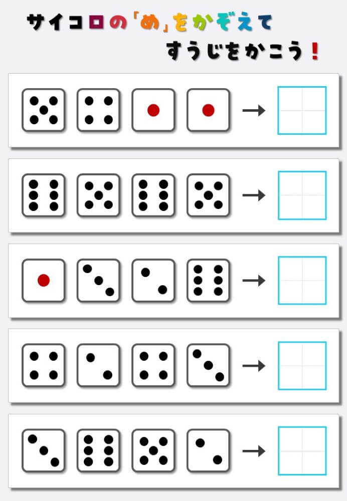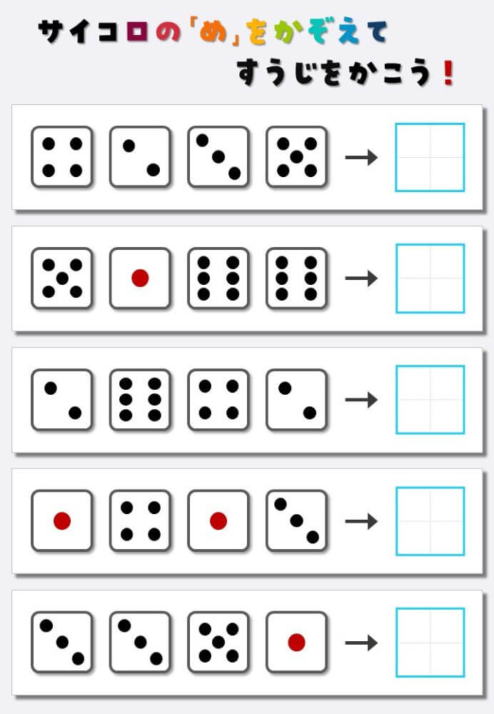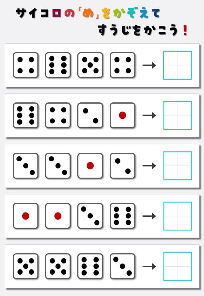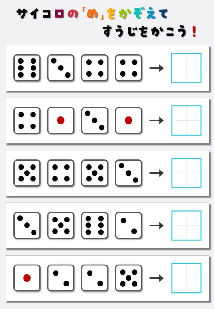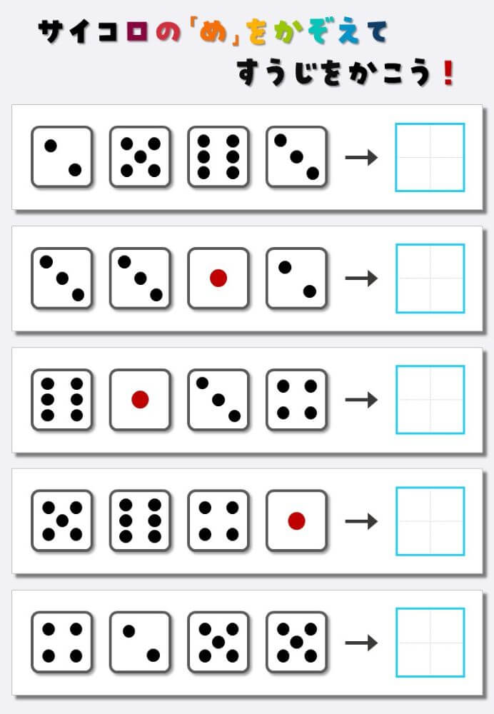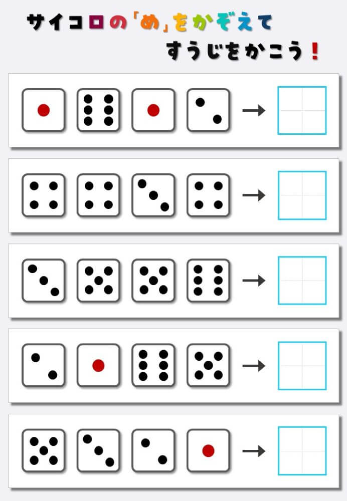4個のサイコロの目を数えて書く:4