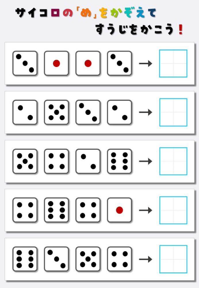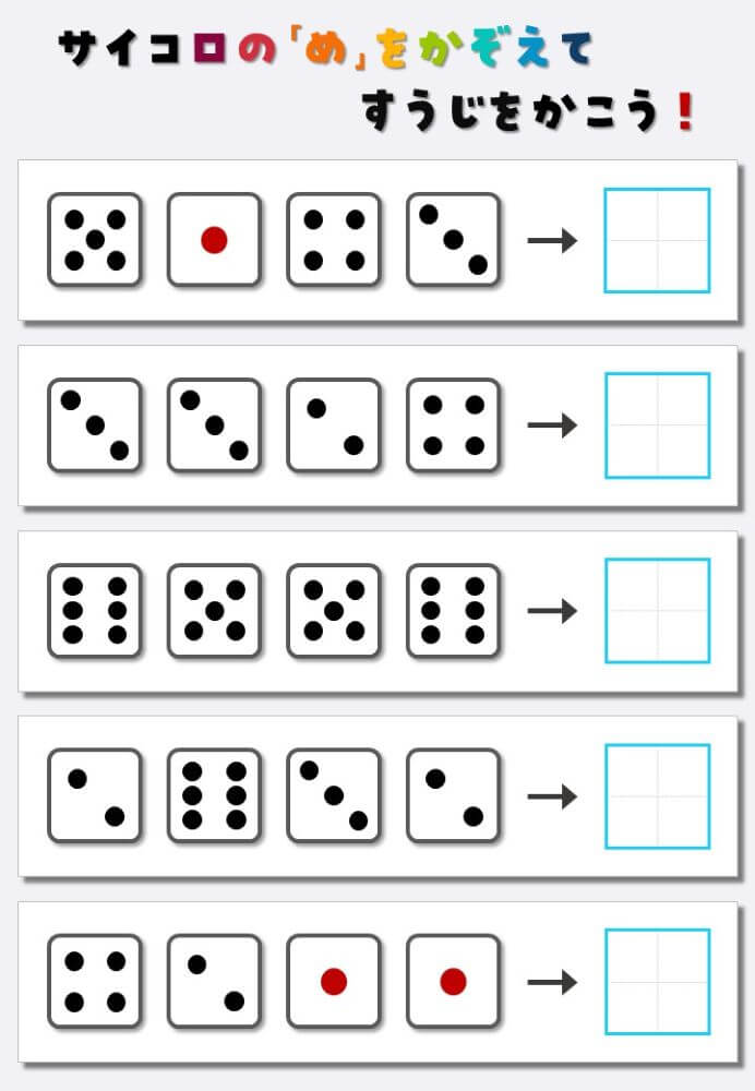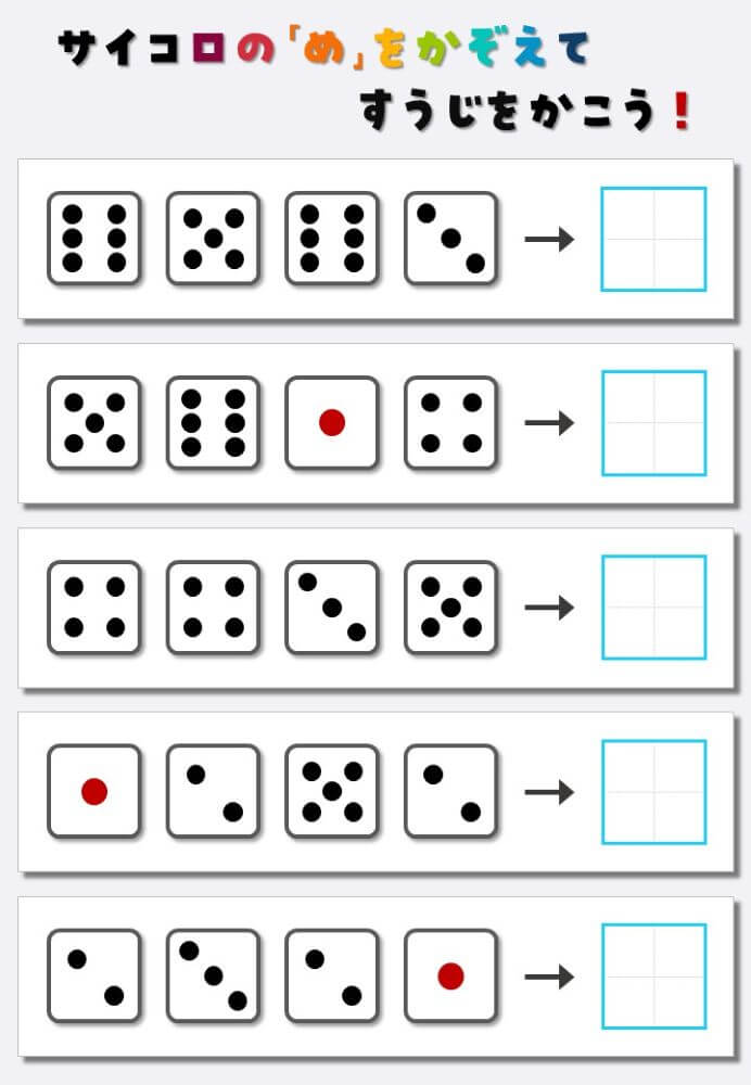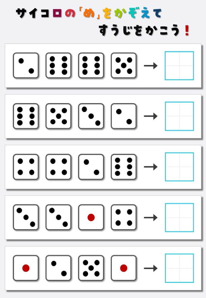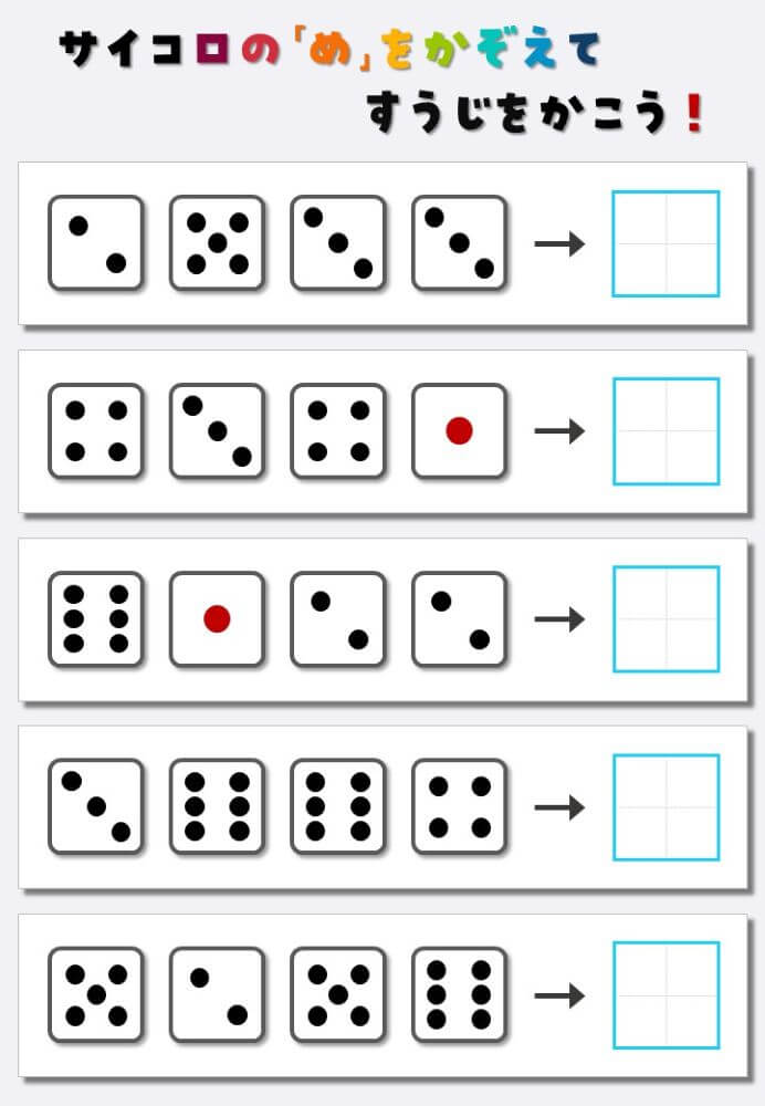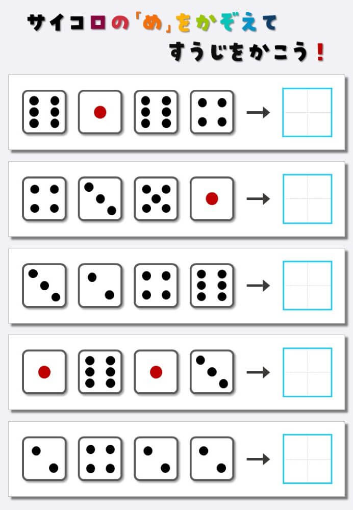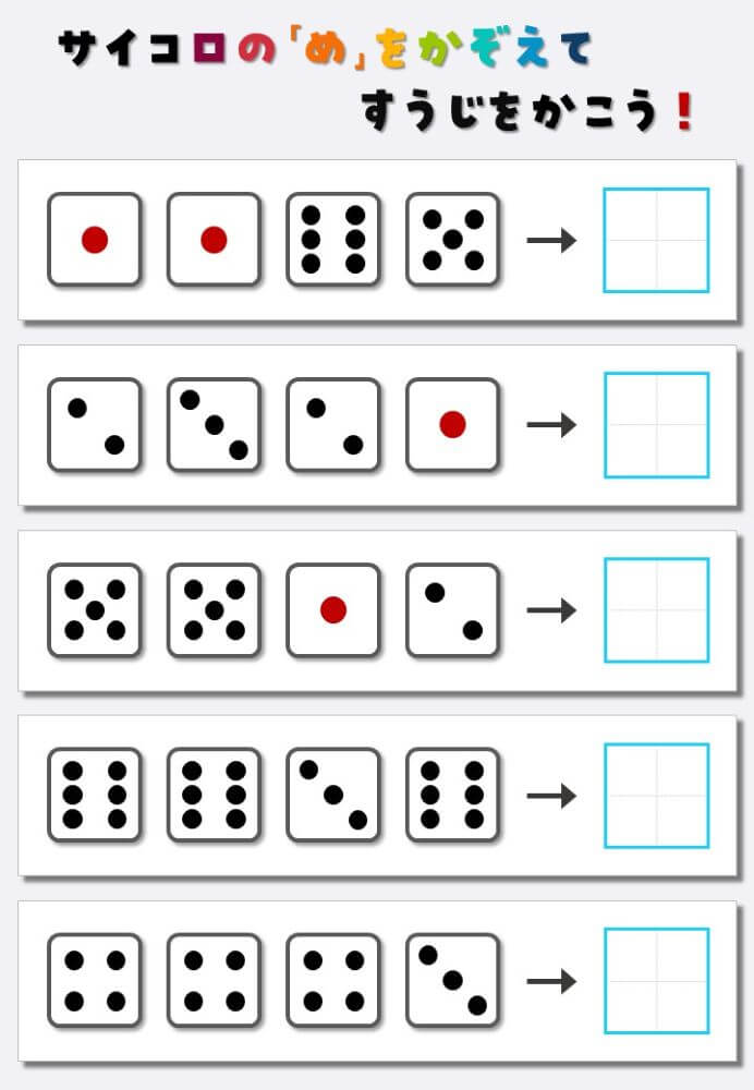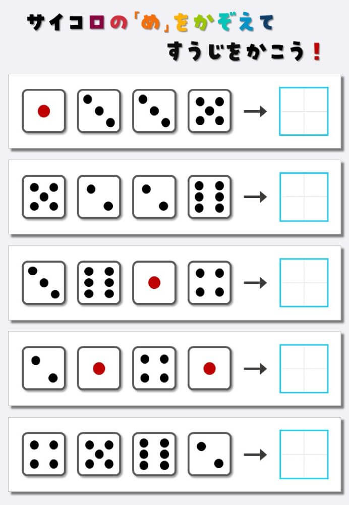 4個のサイコロの目を数えて書く:4