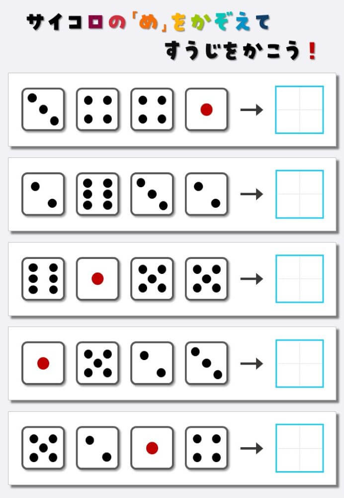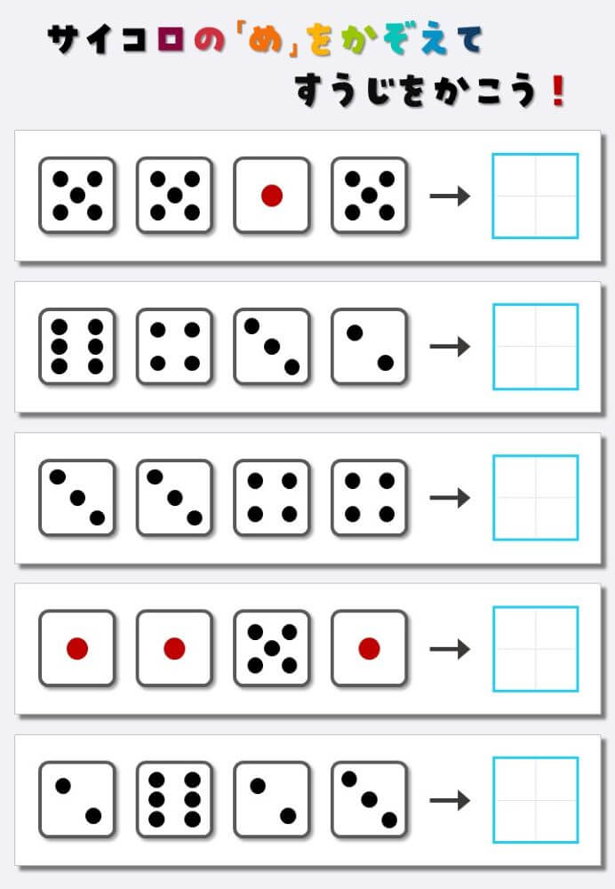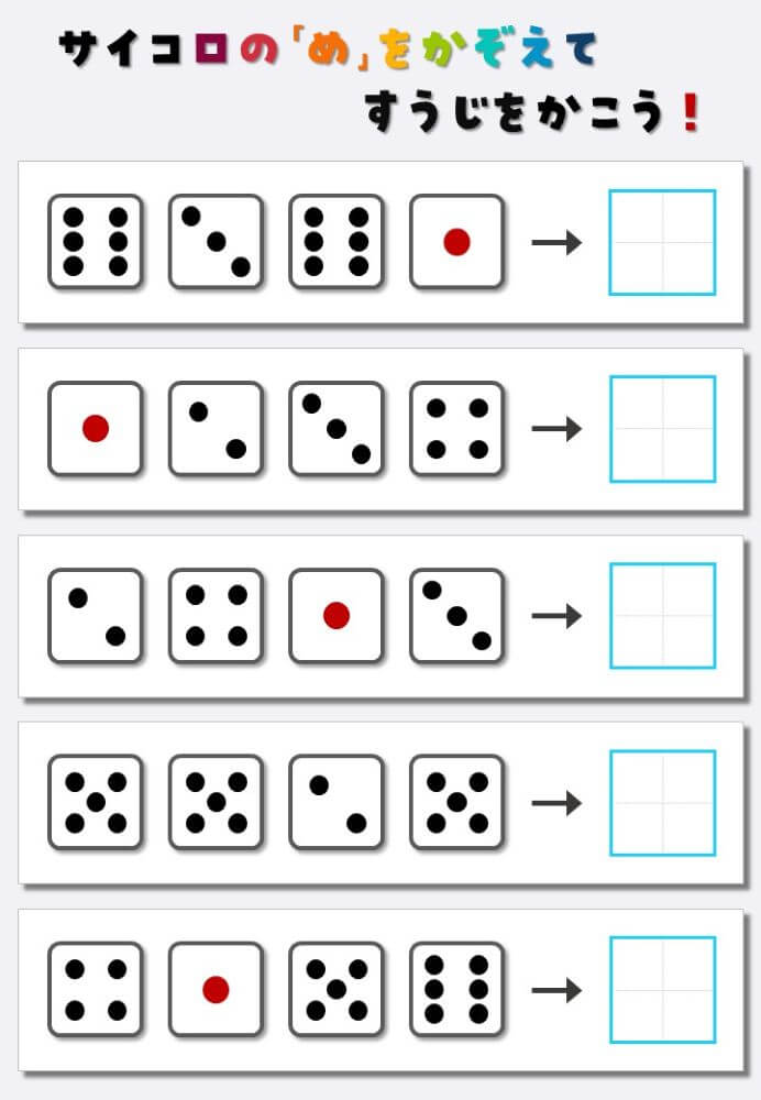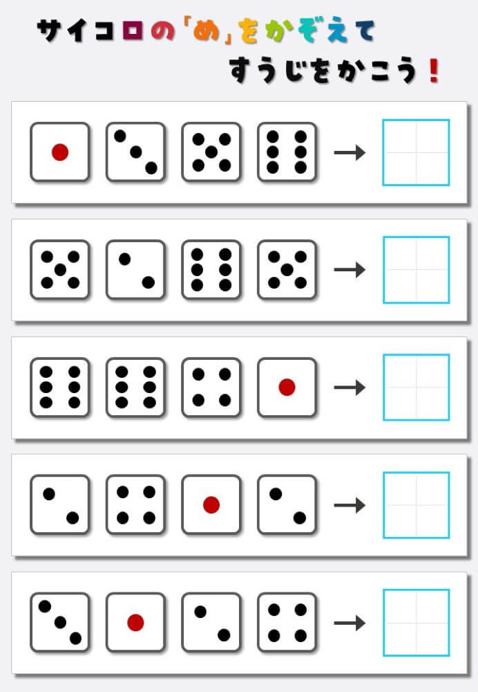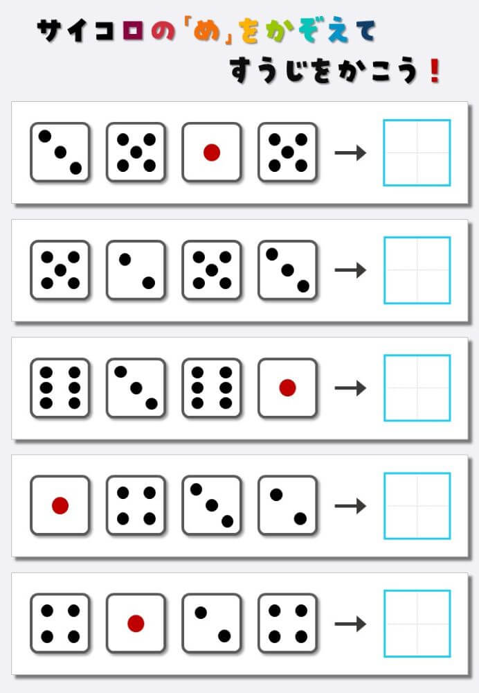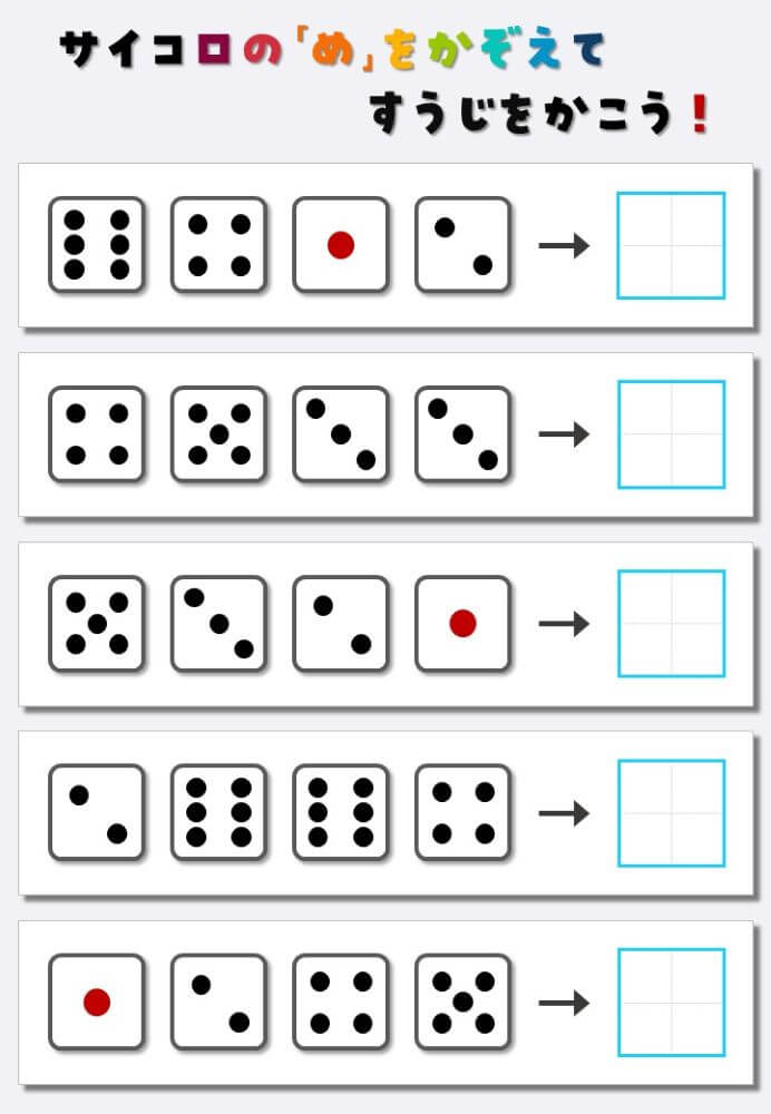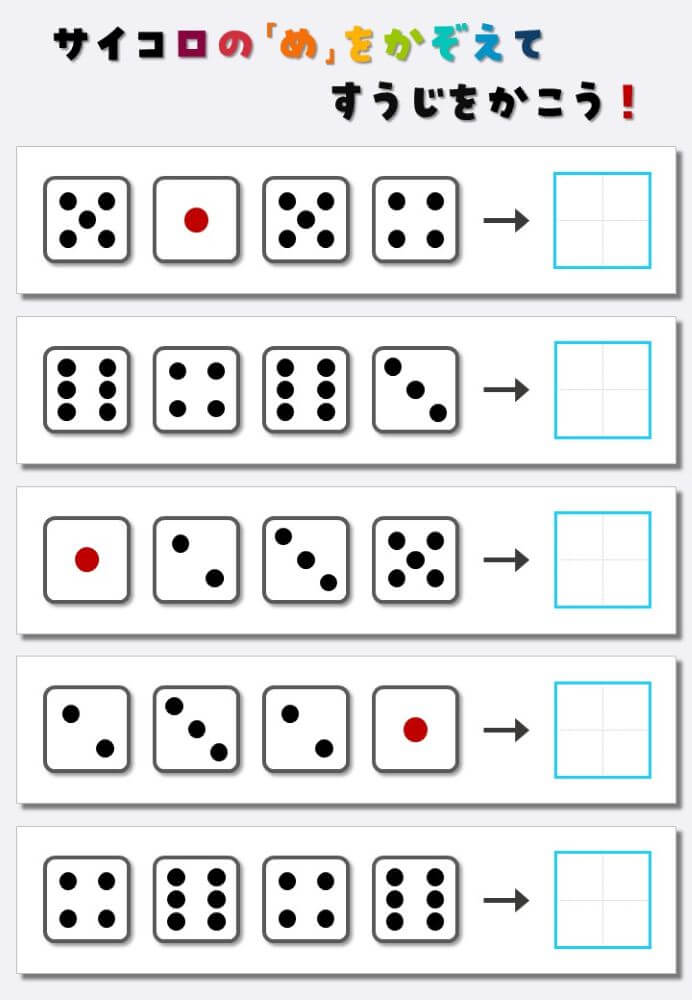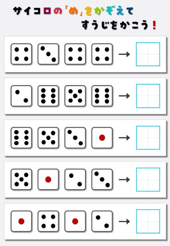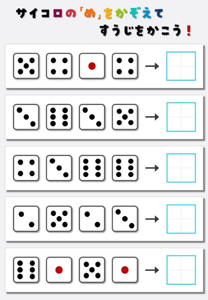 4個のサイコロの目を数えて書く:4