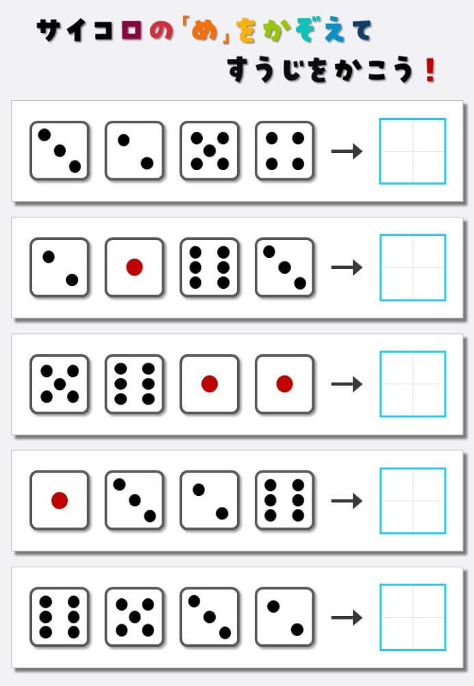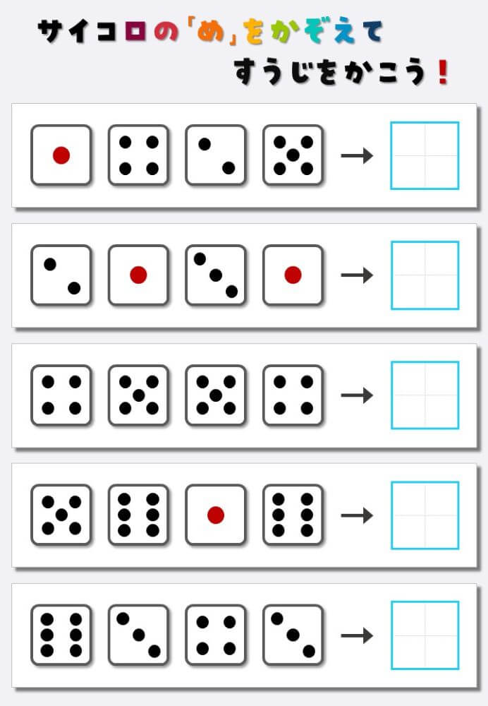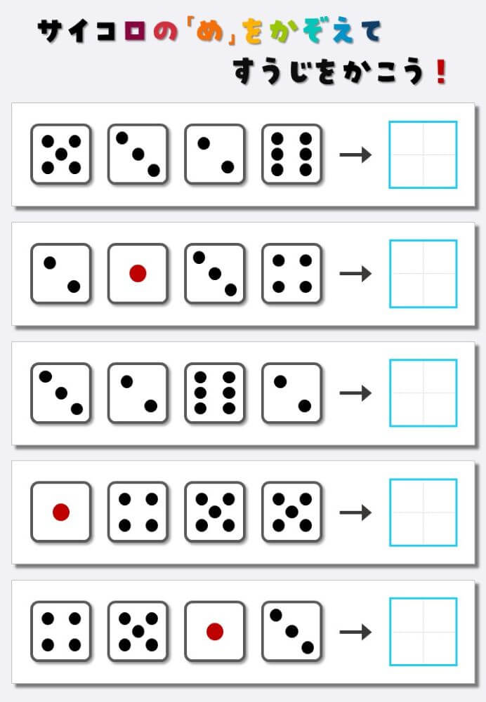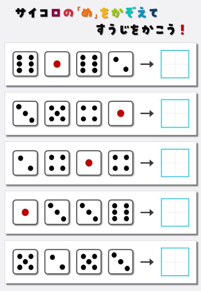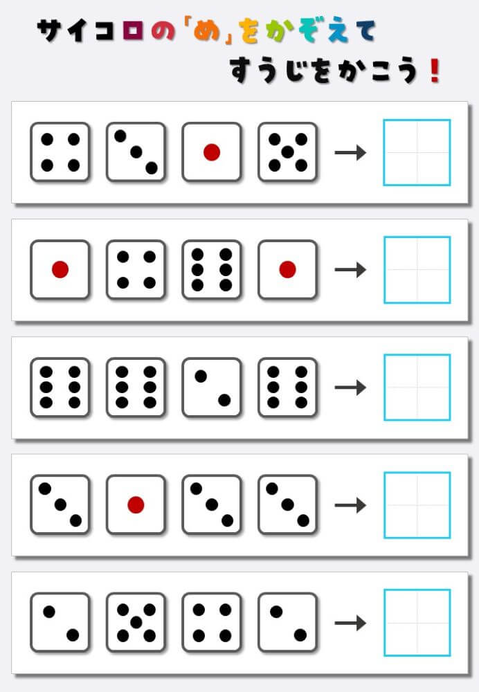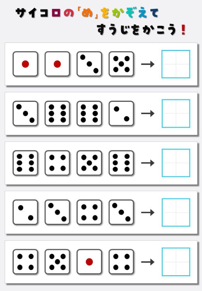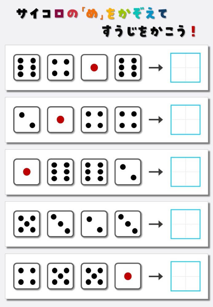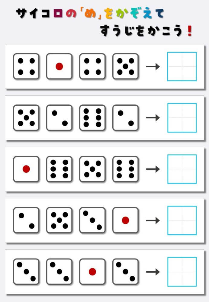 4個のサイコロの目を数えて書く:4