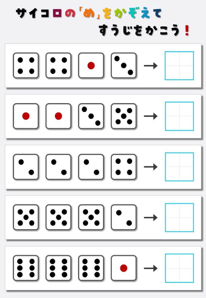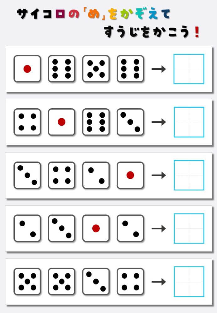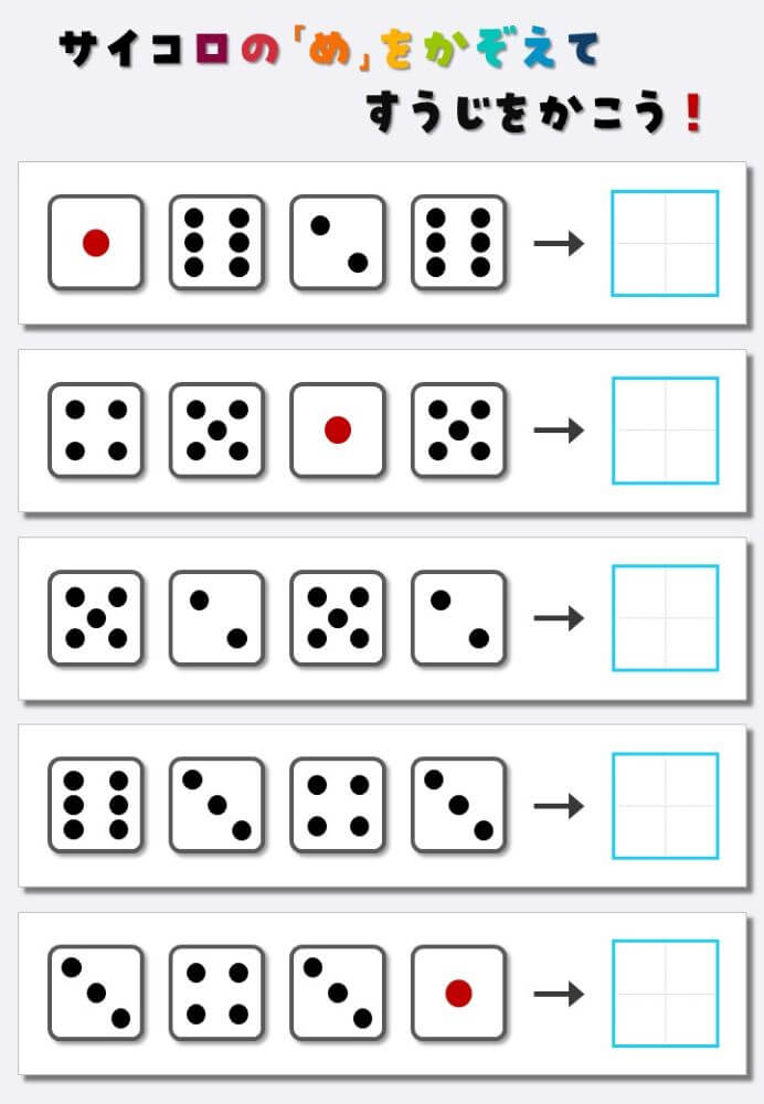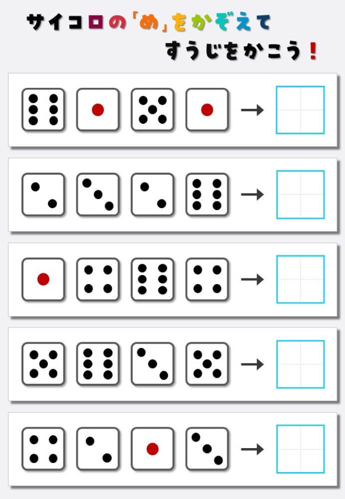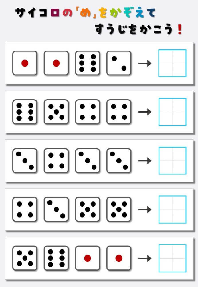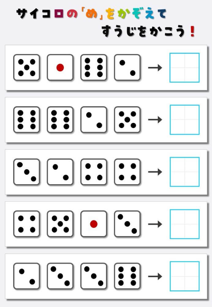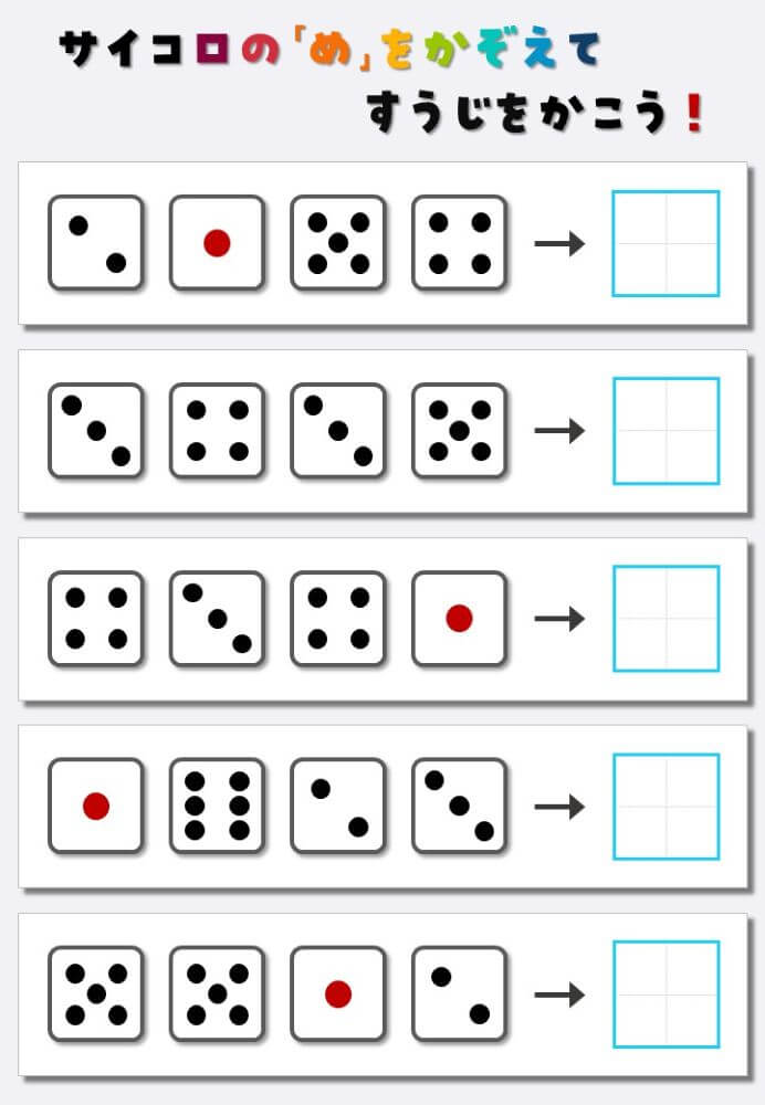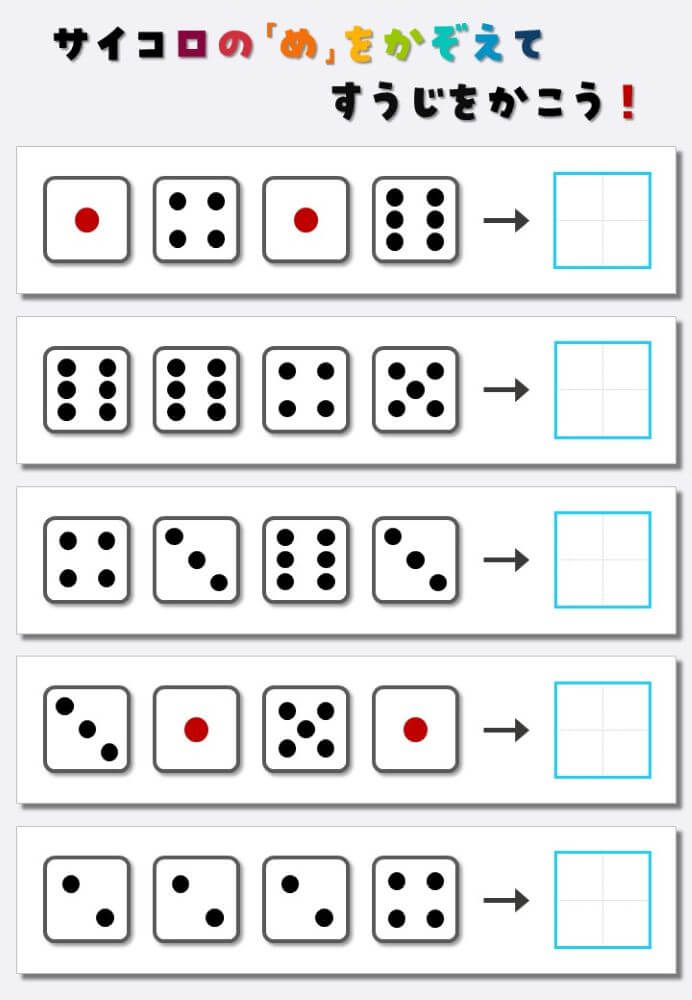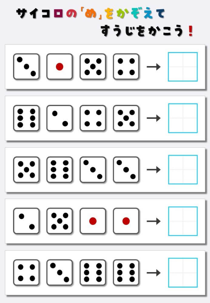 4個のサイコロの目を数えて書く:4