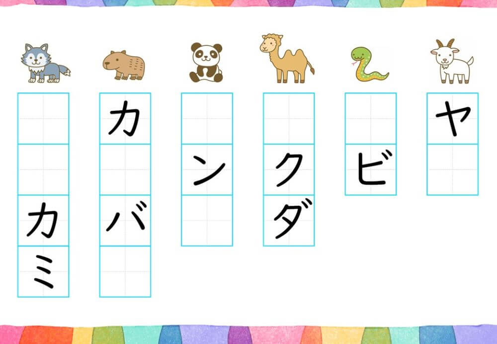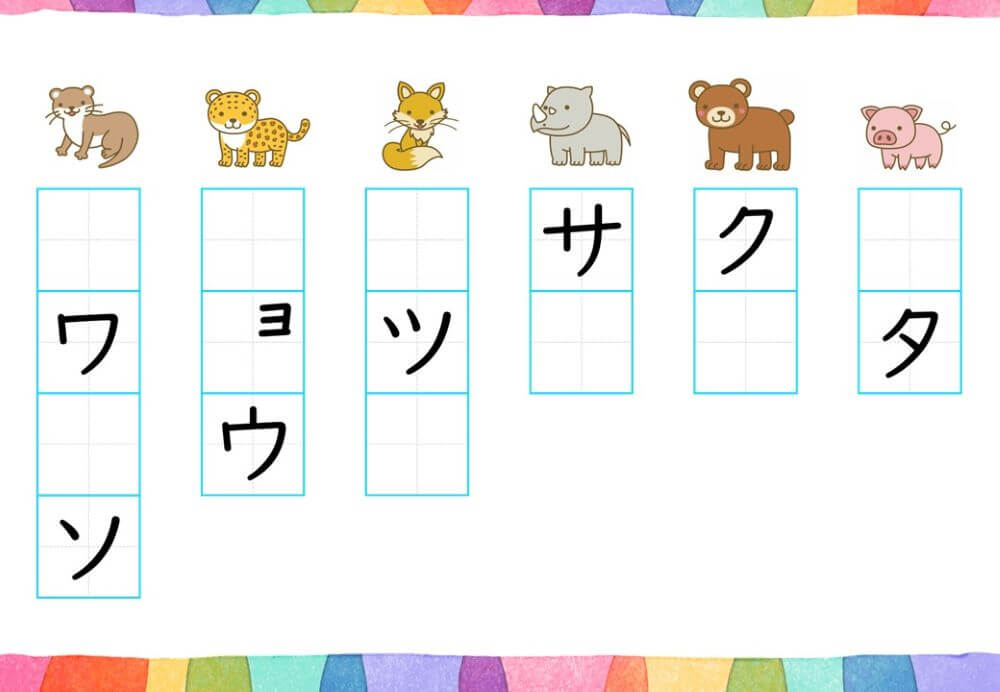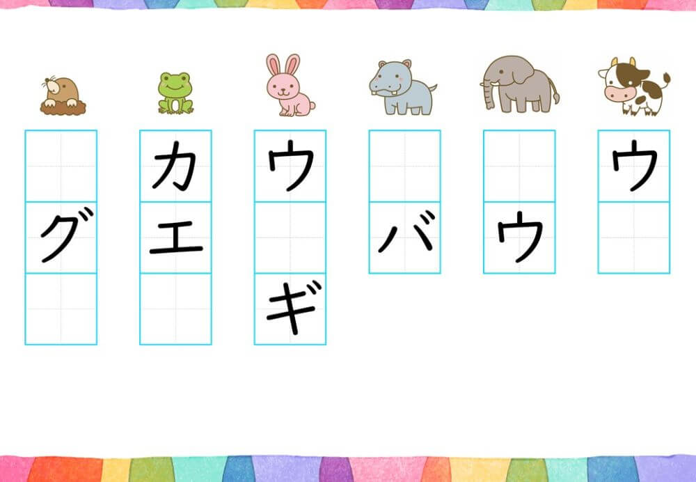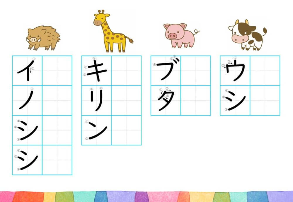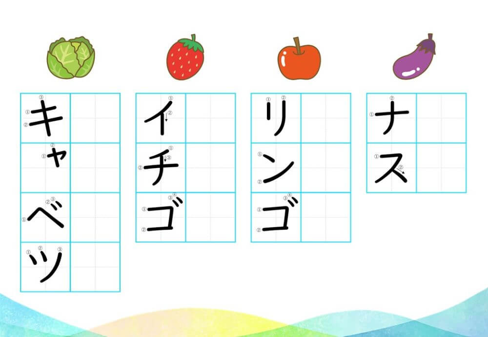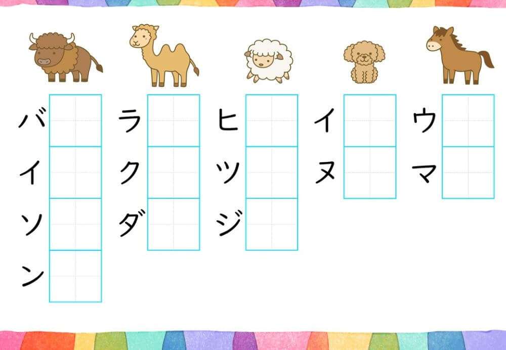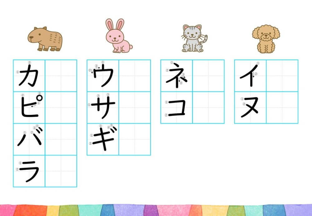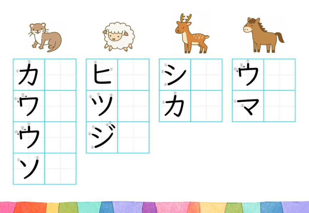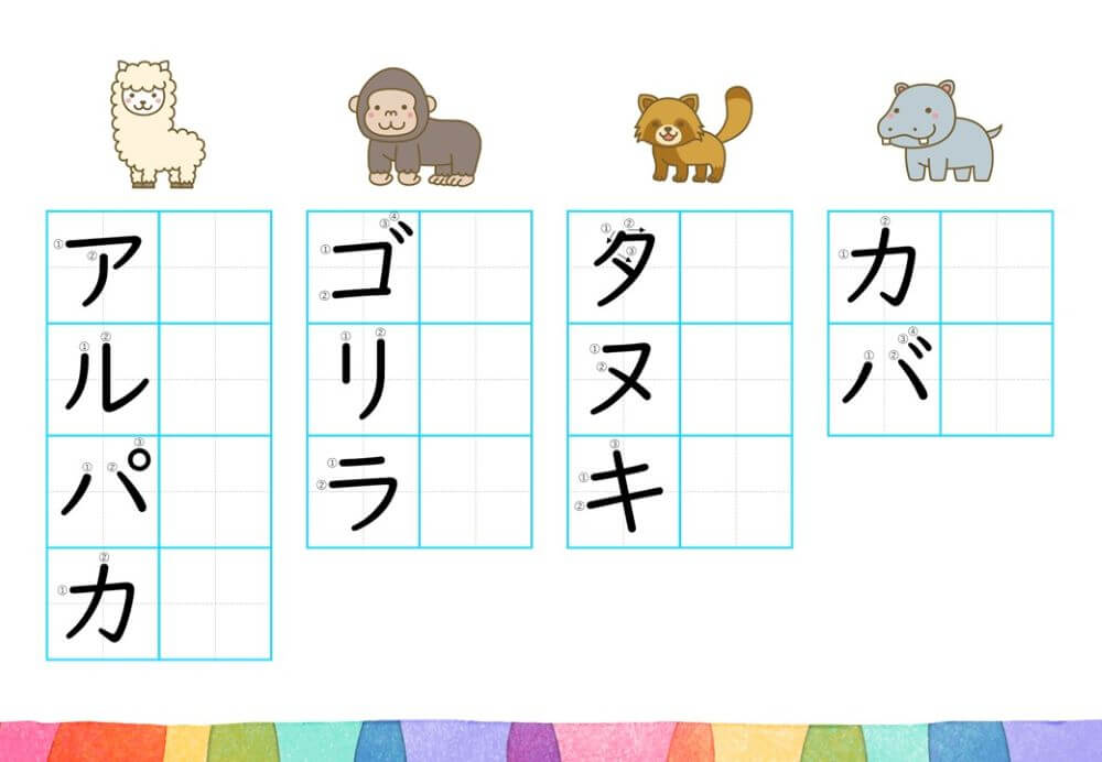 カタカナの練習は、基本的に「ひらがな」がある程度身についてから取り組むのがオススメです。