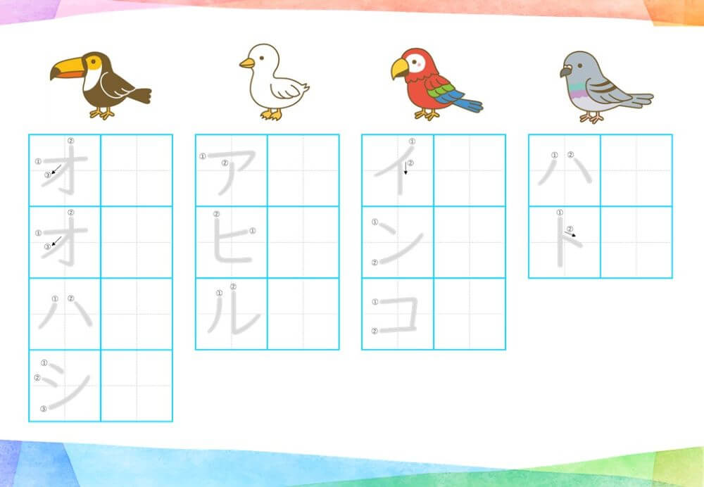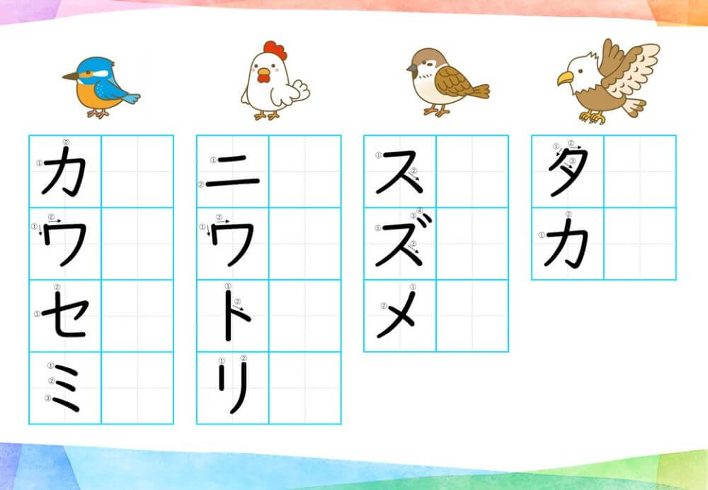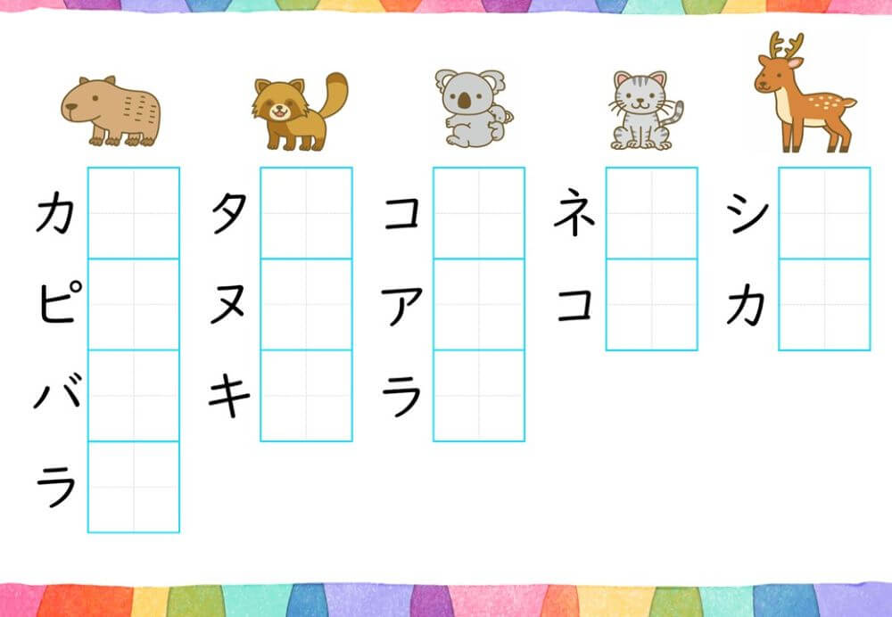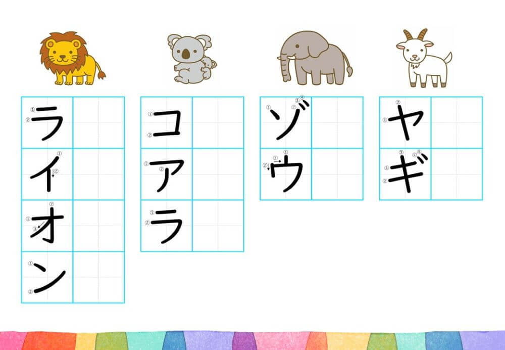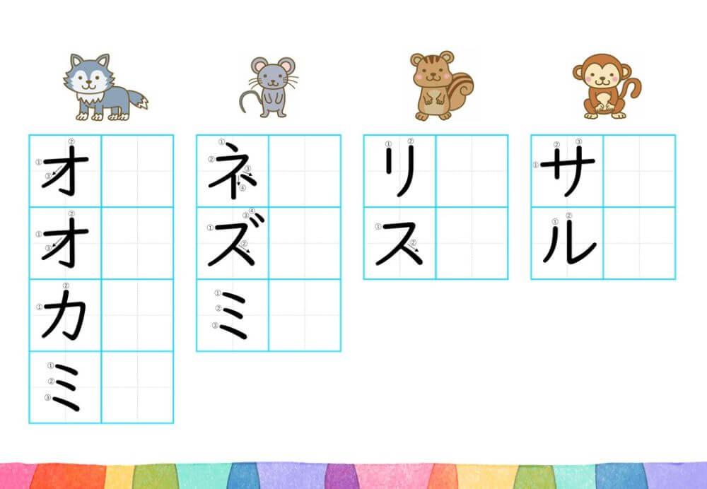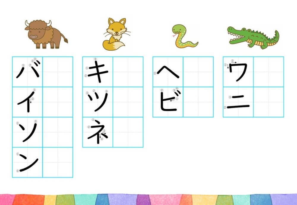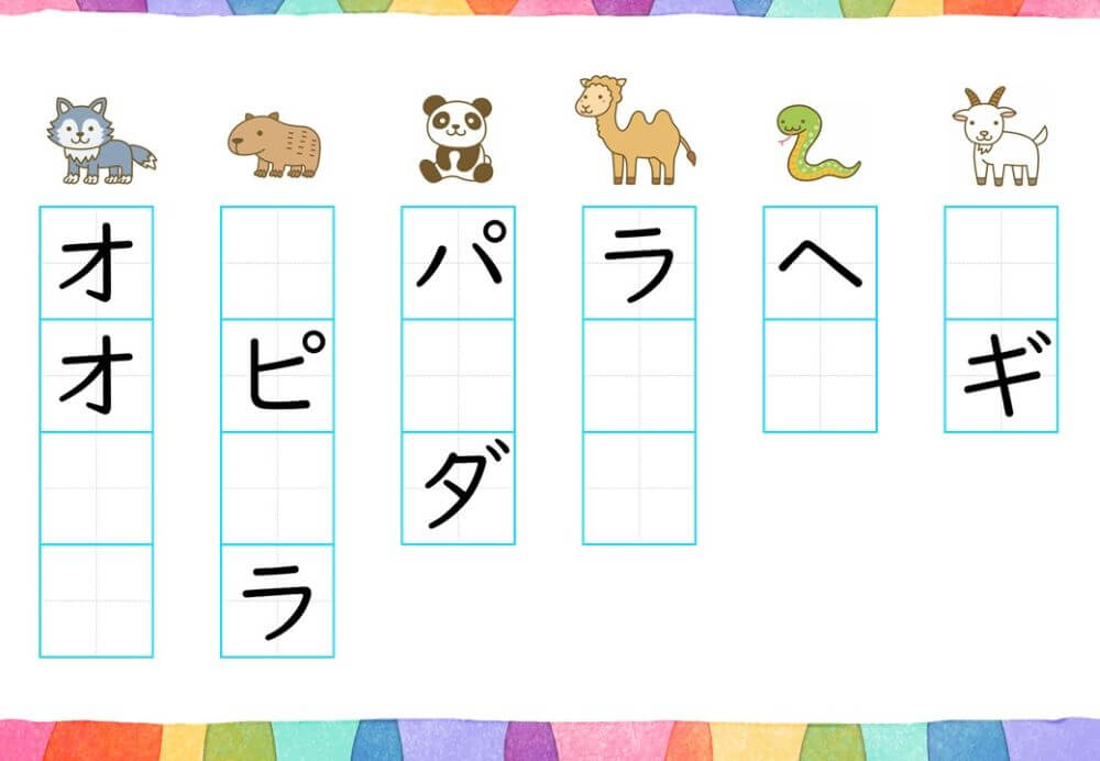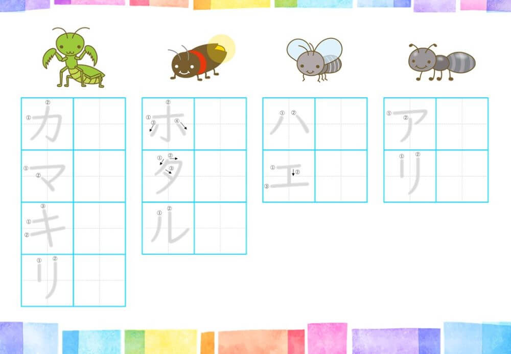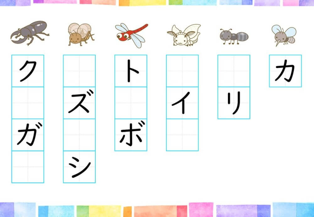 カタカナの練習は、基本的に「ひらがな」がある程度身についてから取り組むのがオススメです。