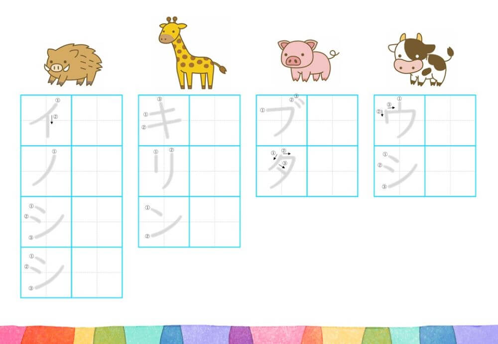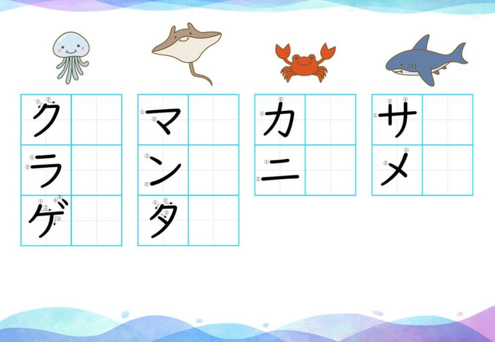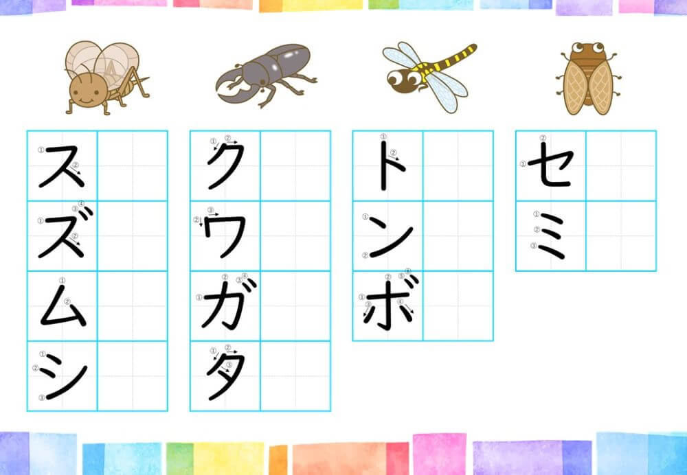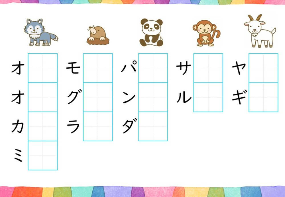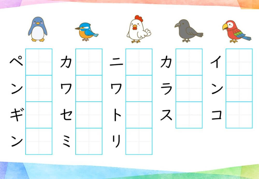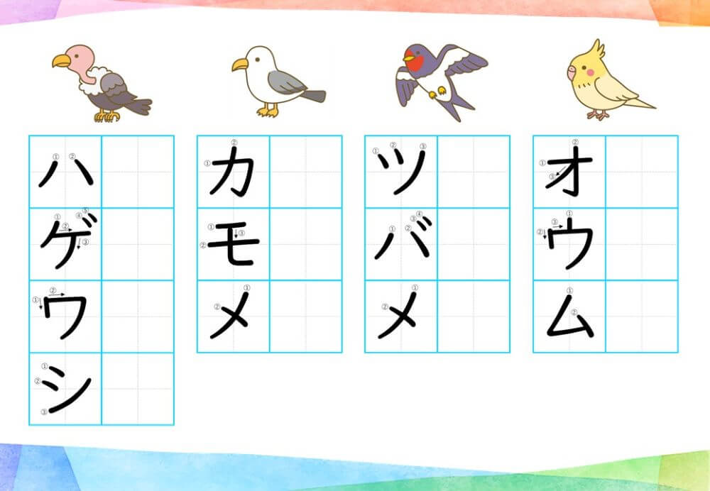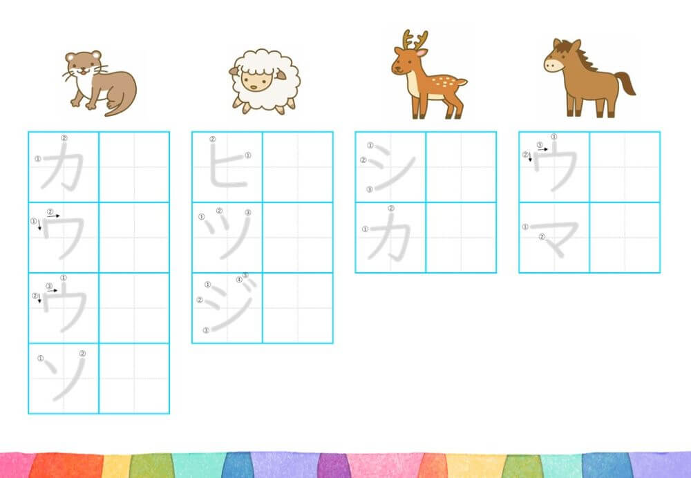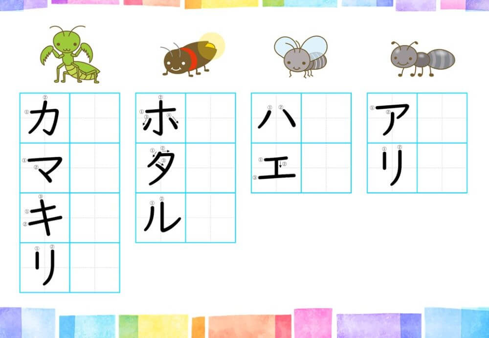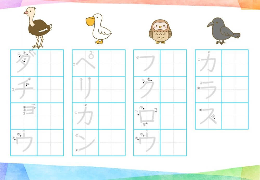 カタカナの練習は、基本的に「ひらがな」がある程度身についてから取り組むのがオススメです。