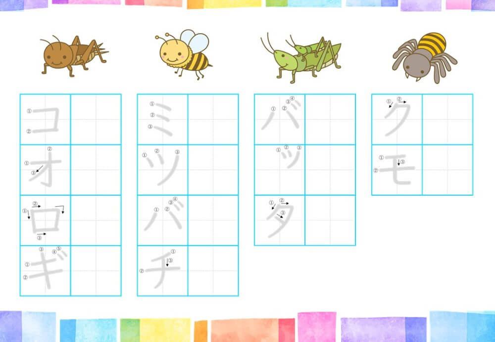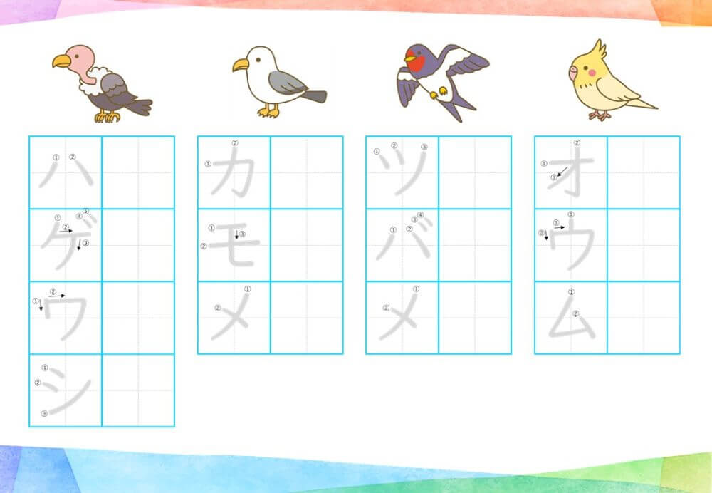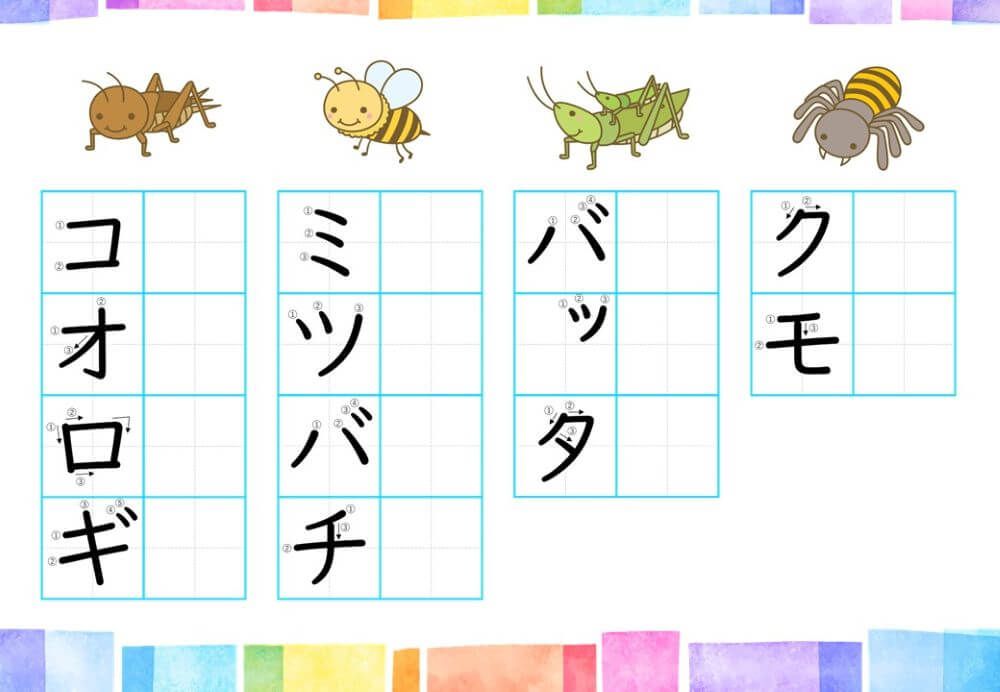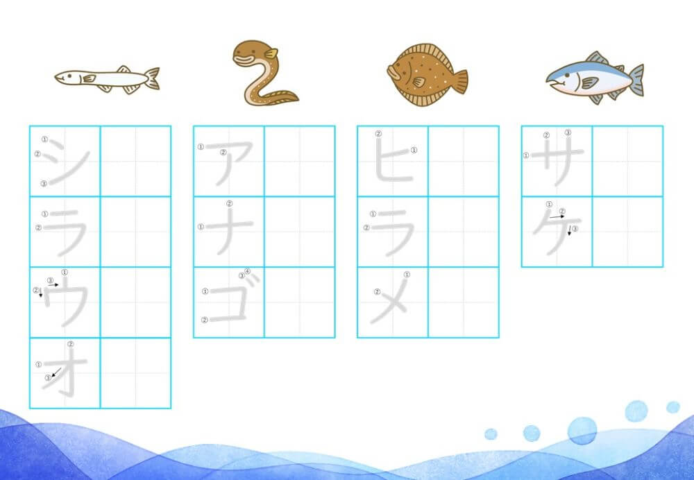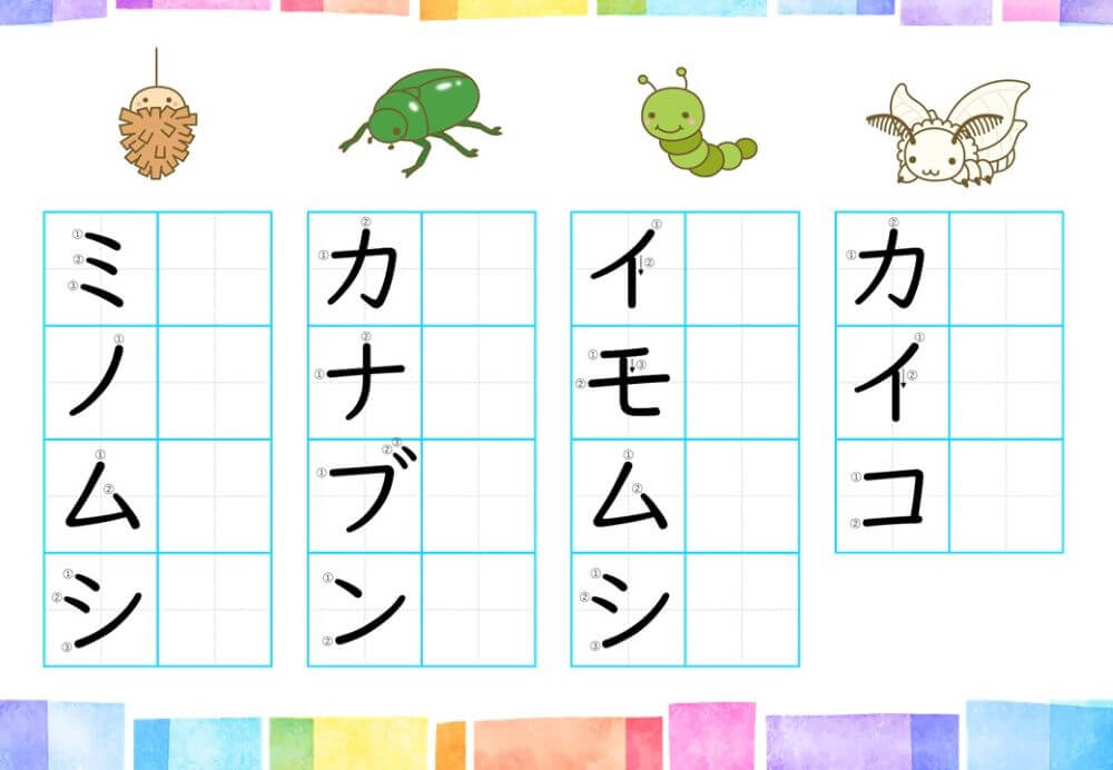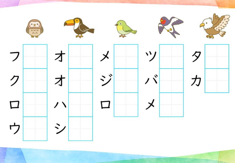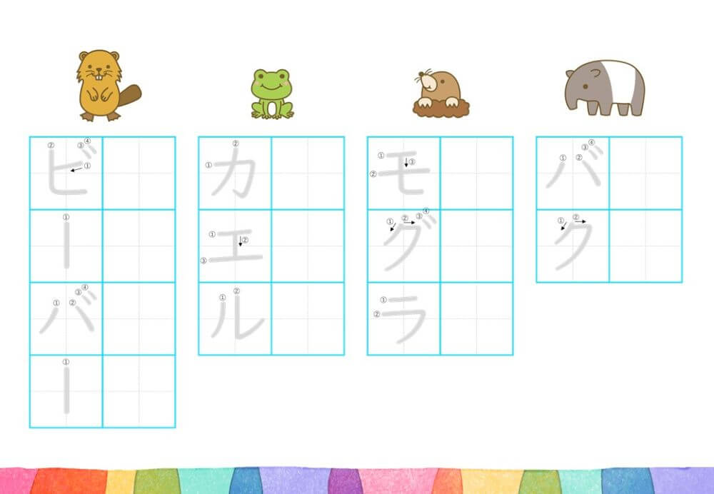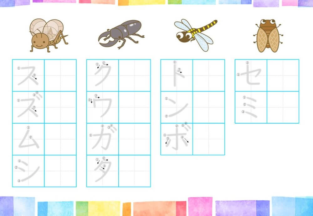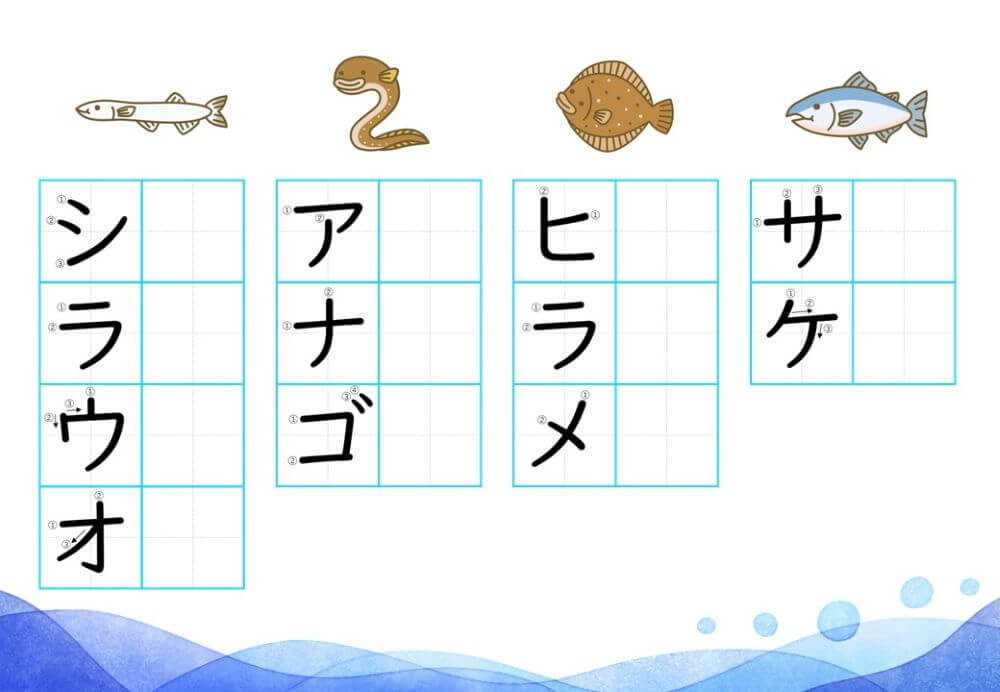 カタカナの練習は、基本的に「ひらがな」がある程度身についてから取り組むのがオススメです。