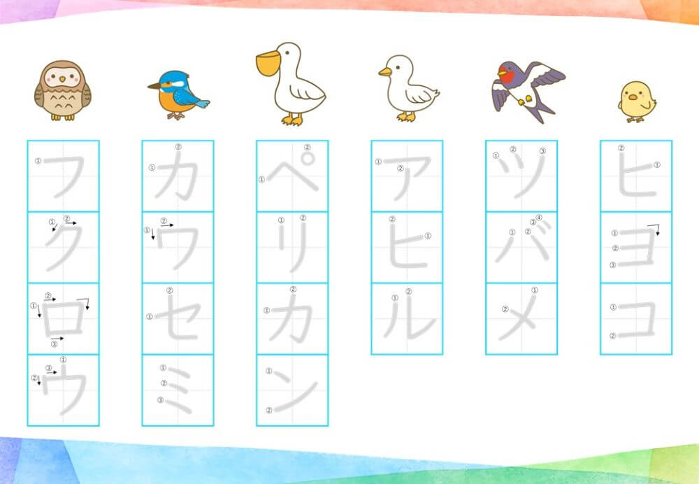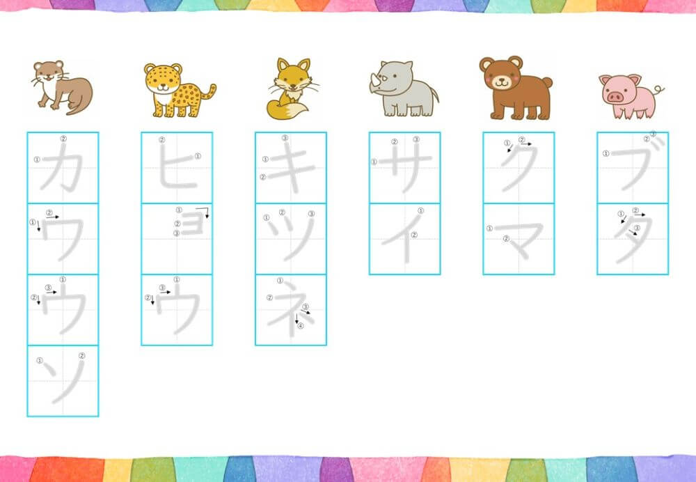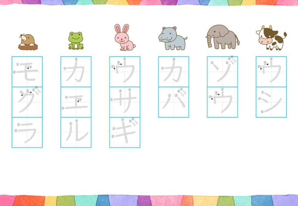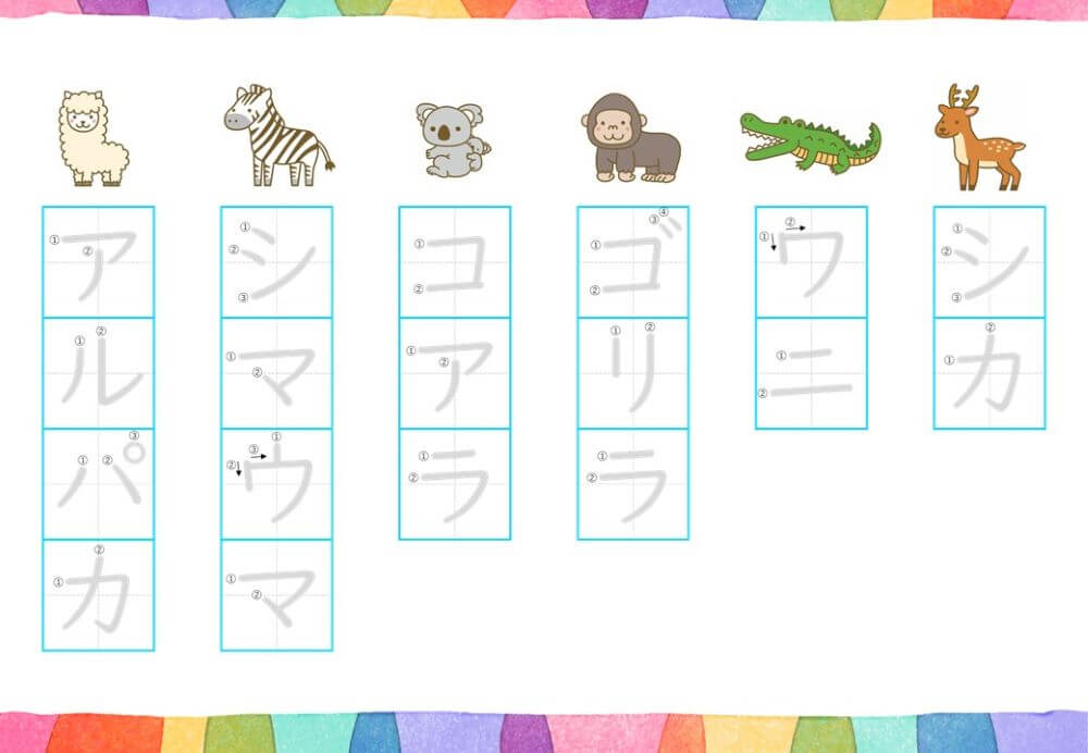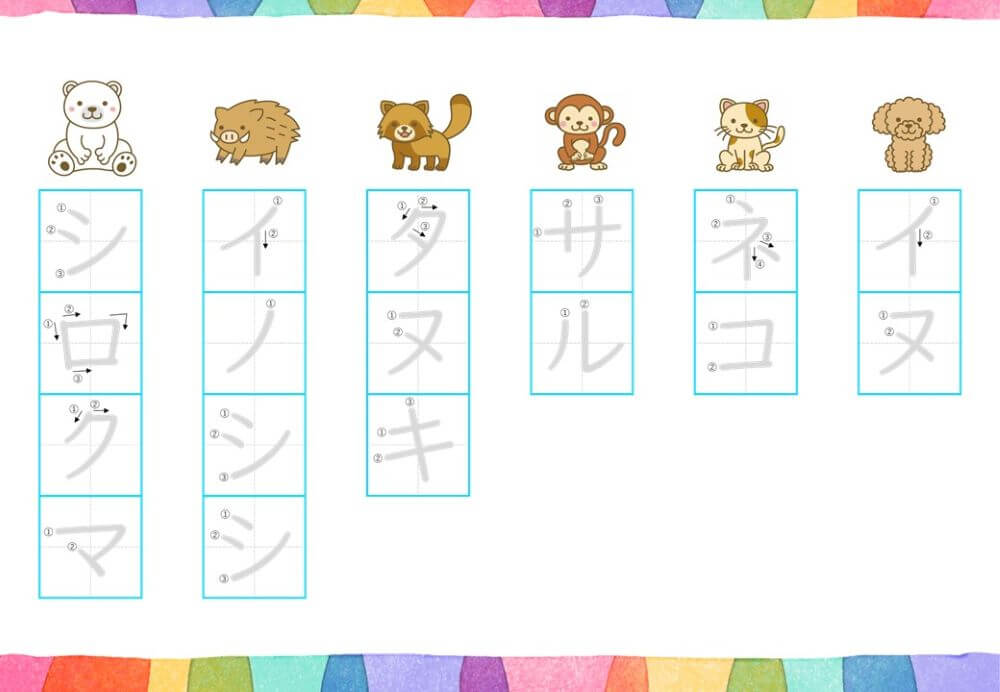 カタカナの形を覚えながら、正しい運筆を身につけることができます。カタカナ練習が初めてのお子さんにもおすすめです。