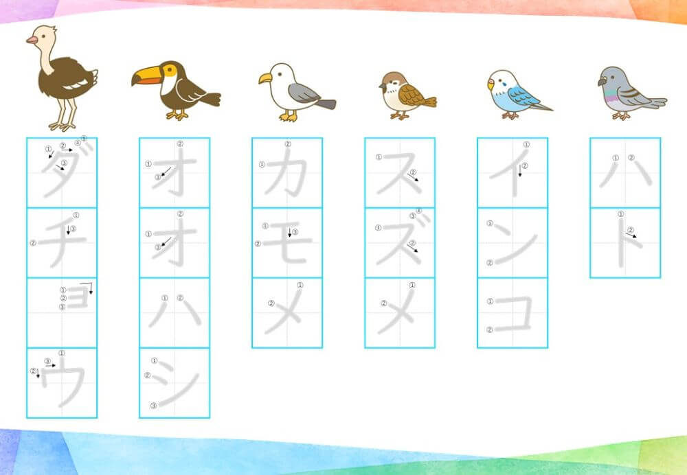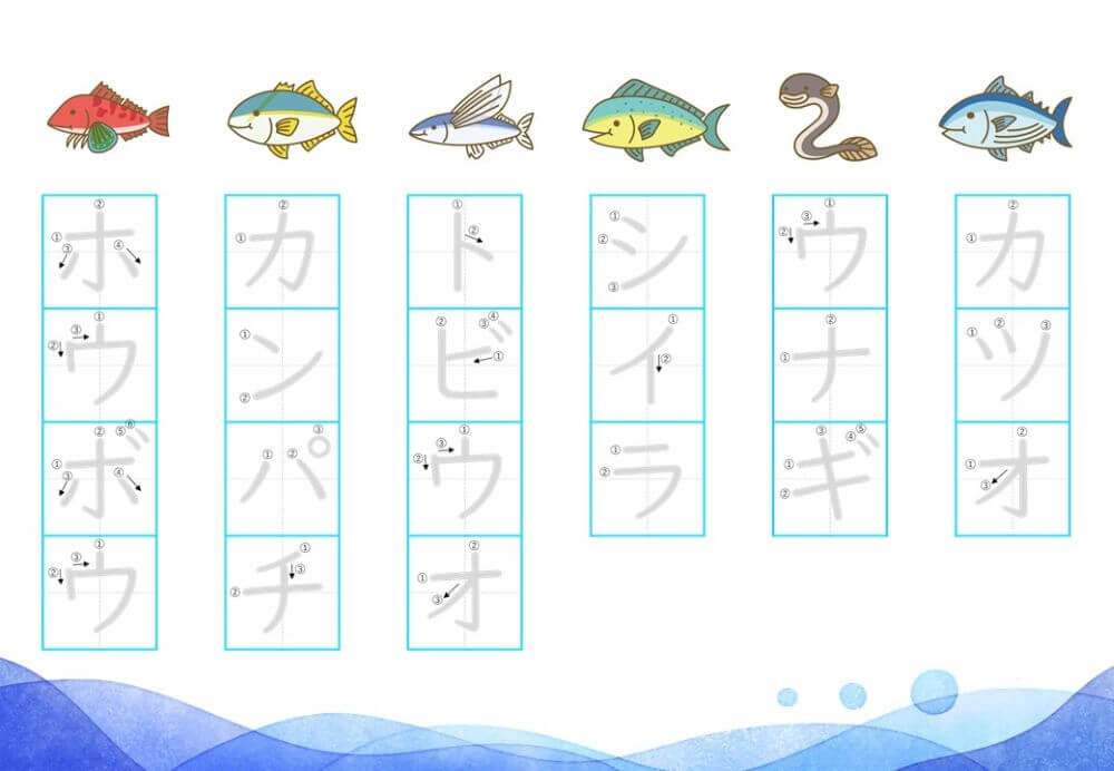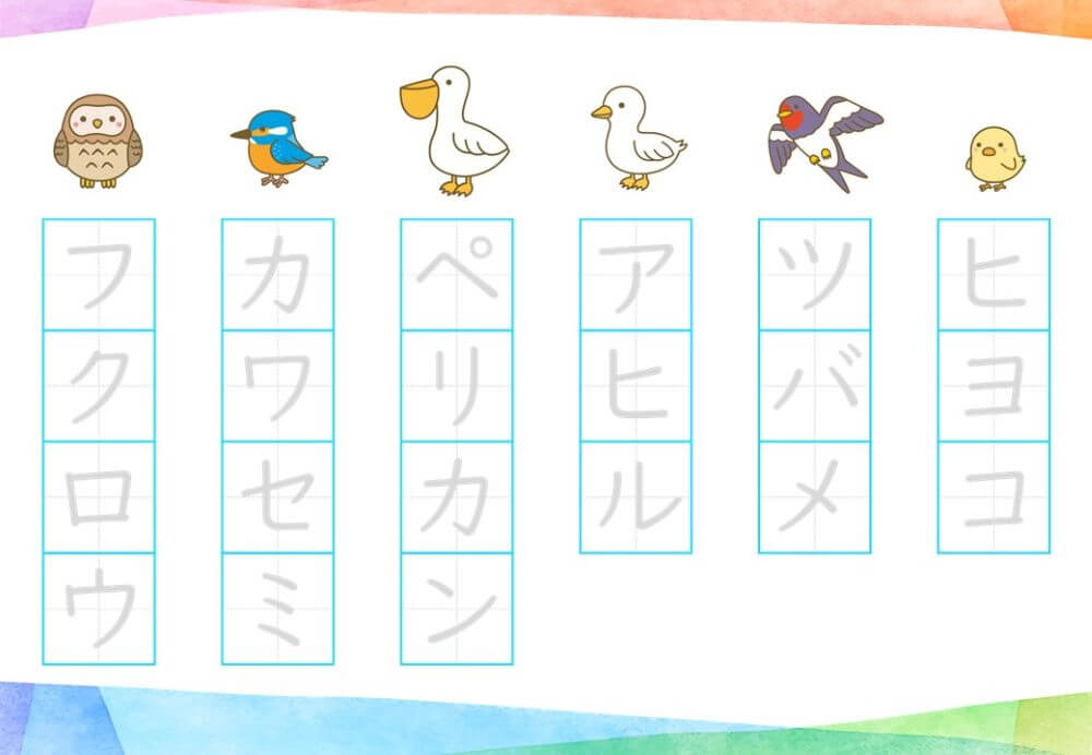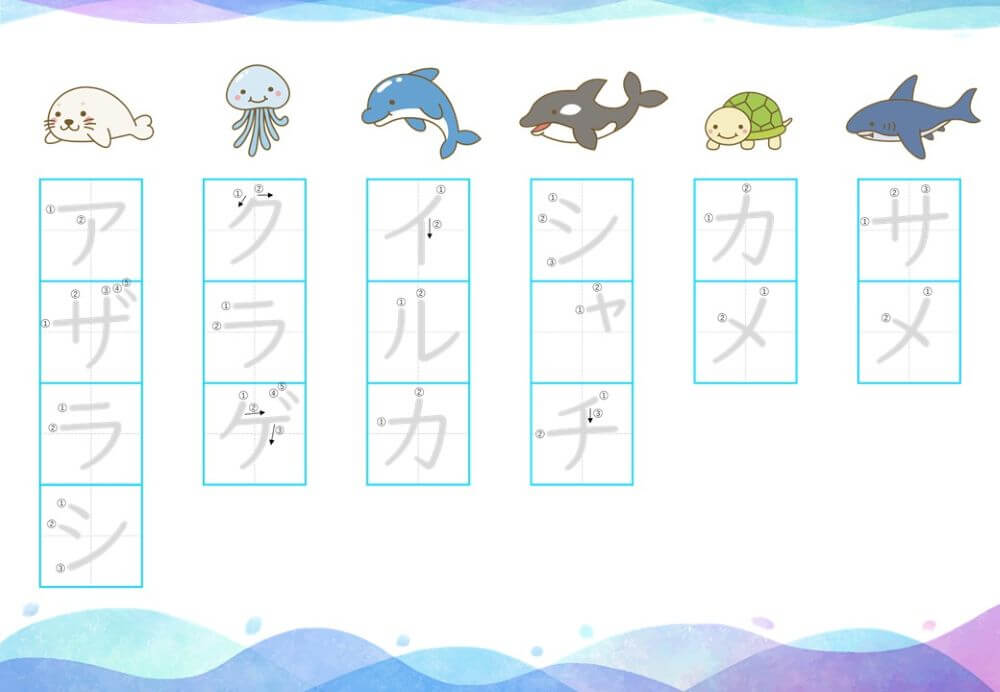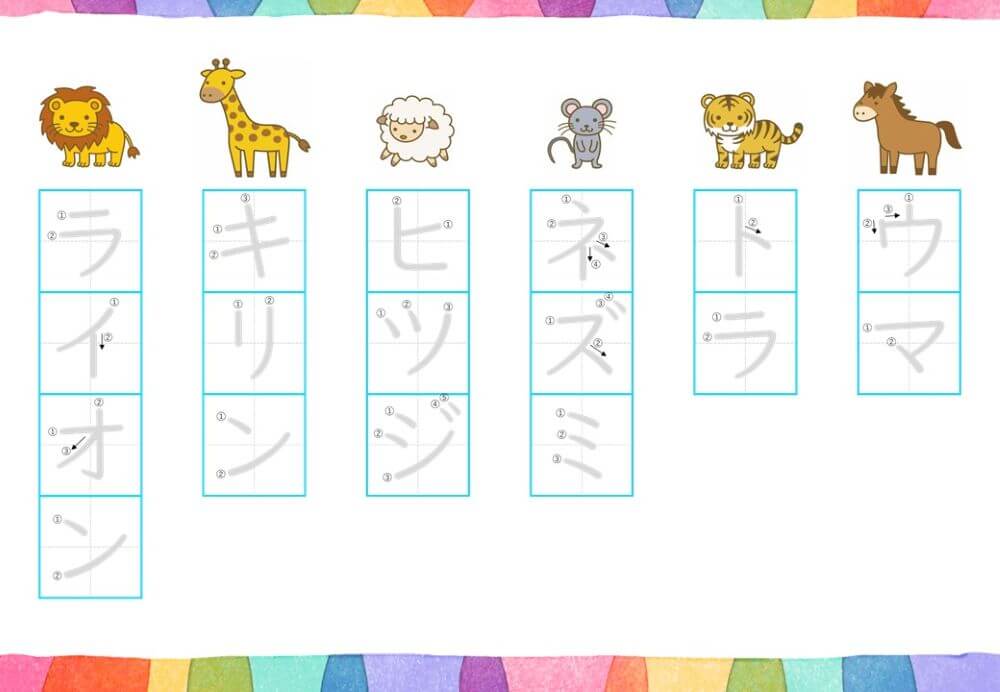 カタカナの形を覚えながら、正しい運筆を身につけることができます。カタカナ練習が初めてのお子さんにもおすすめです。