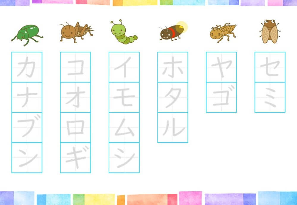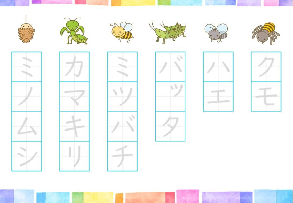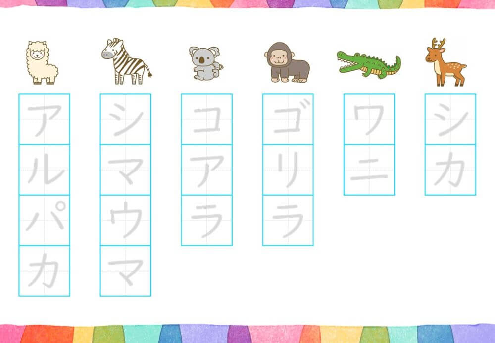身近な言葉から少し珍しい言葉まで幅広く取り入れ、カタカナの練習をしながら自然に語彙を増やせるようにしました。