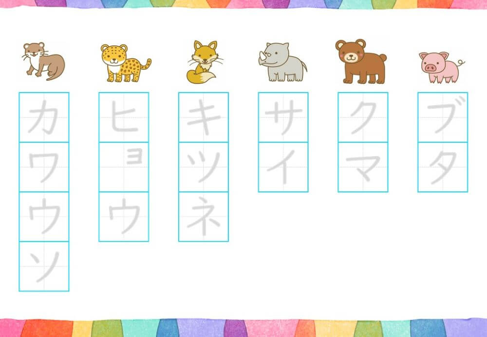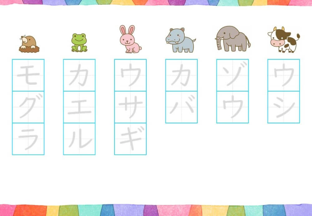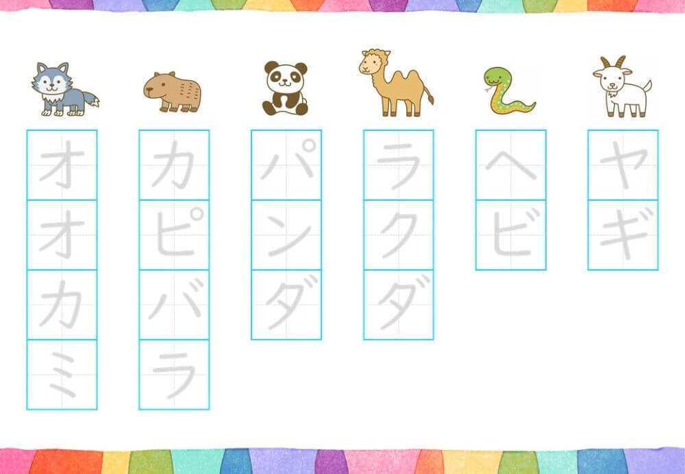 すでにカタカナを覚えてきたお子さんが、思い出しながら書く力を伸ばすのに役立ちます。
