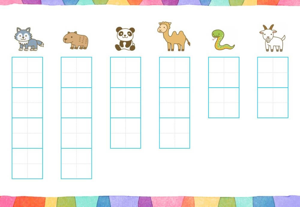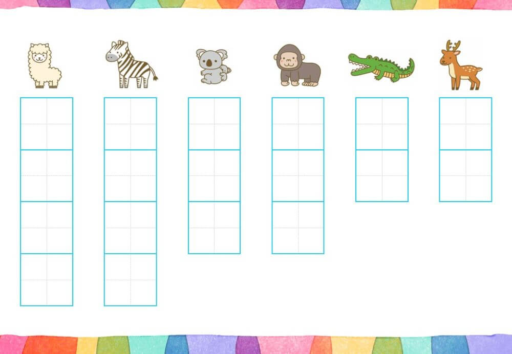 『なぞり書き』の形式ですが、書き順は描かれていません。すでに書き順を理解しているお子さん向けのプリントです。