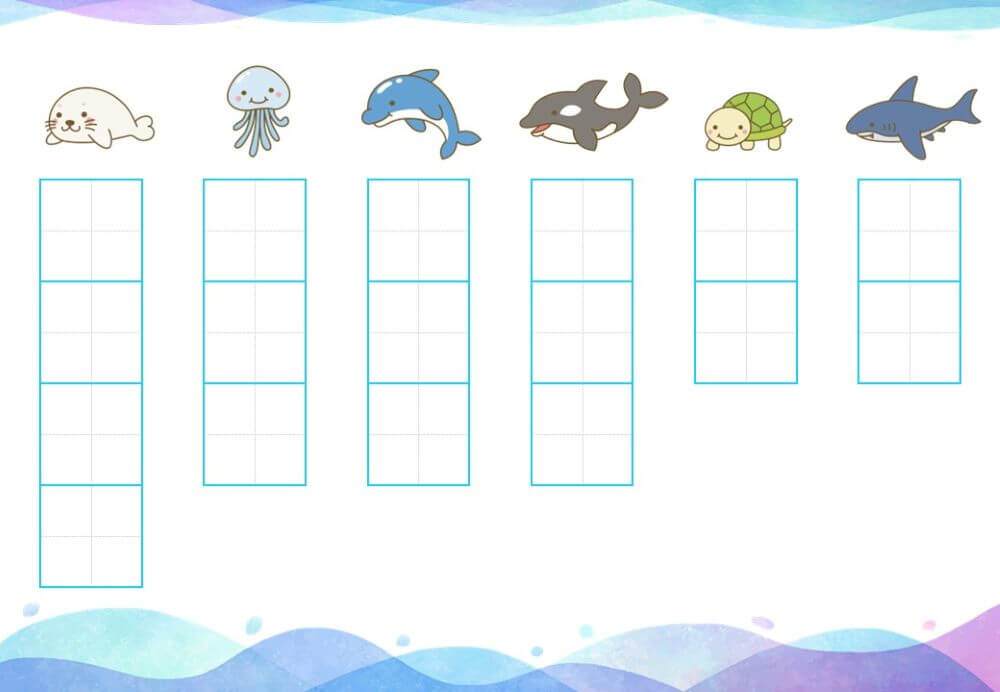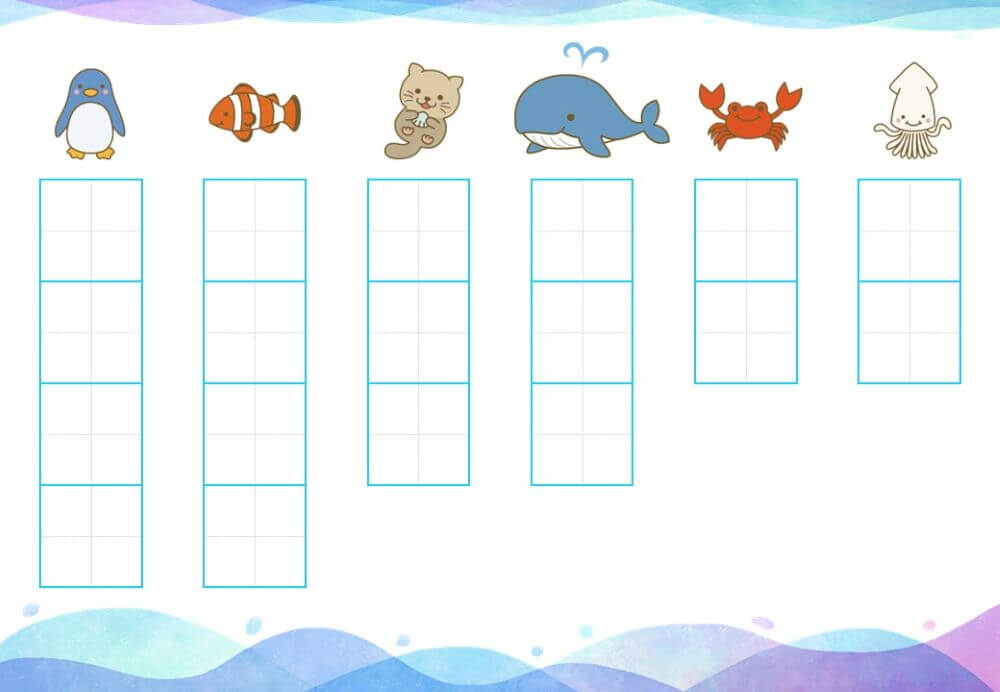 このページでは、ひらがな練習のあとにスムーズにつなげられるよう、さまざまな難易度のプリントを用意しました。
