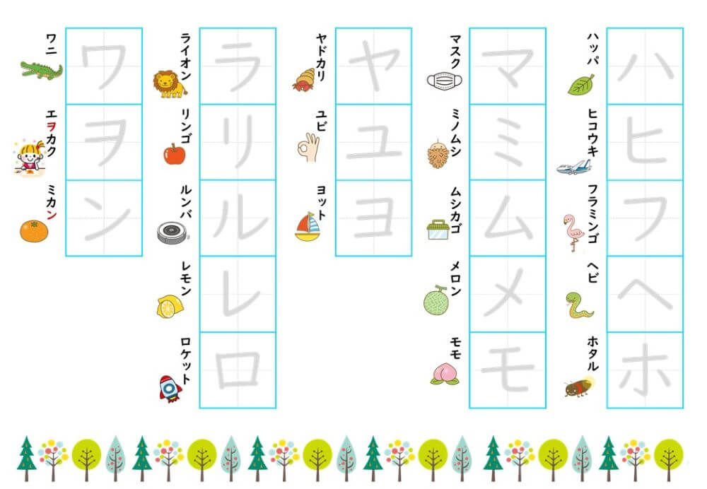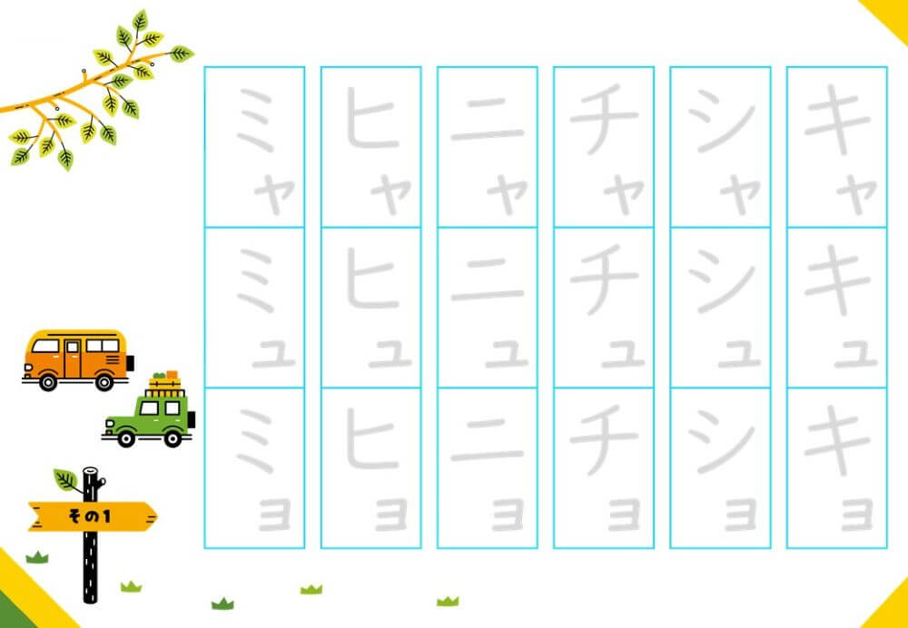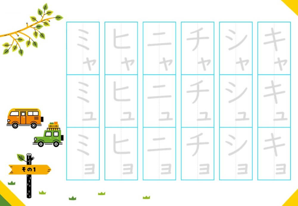 カタカナの『単音節』練習プリント!清音・濁音・拗音までを楽しく練習