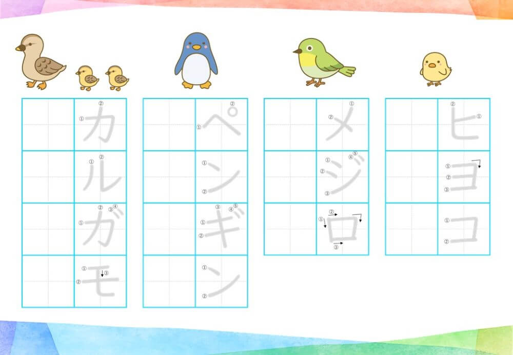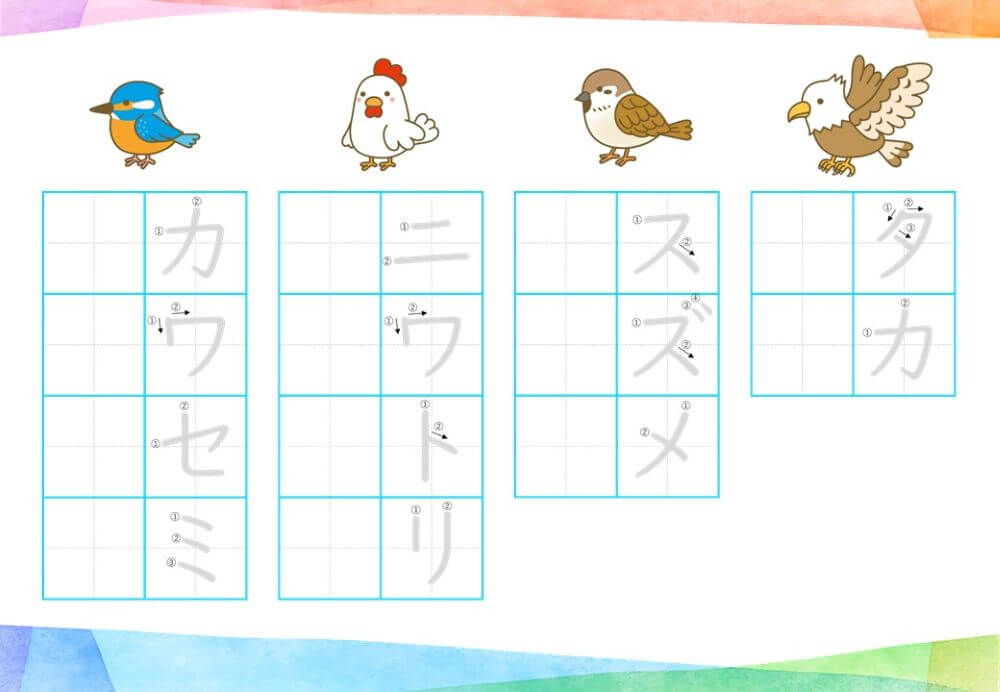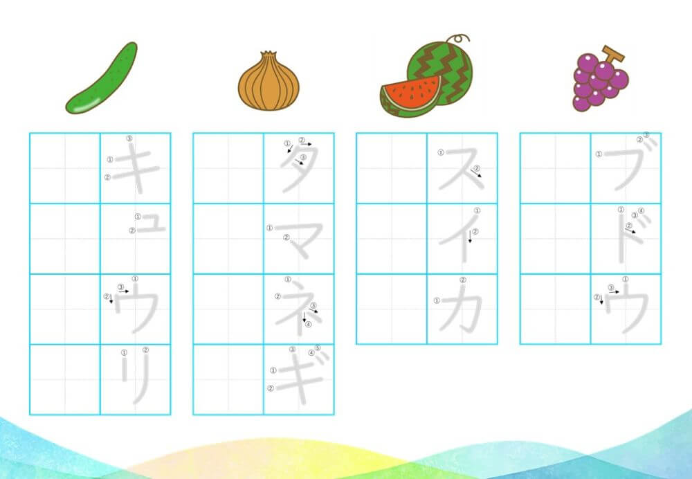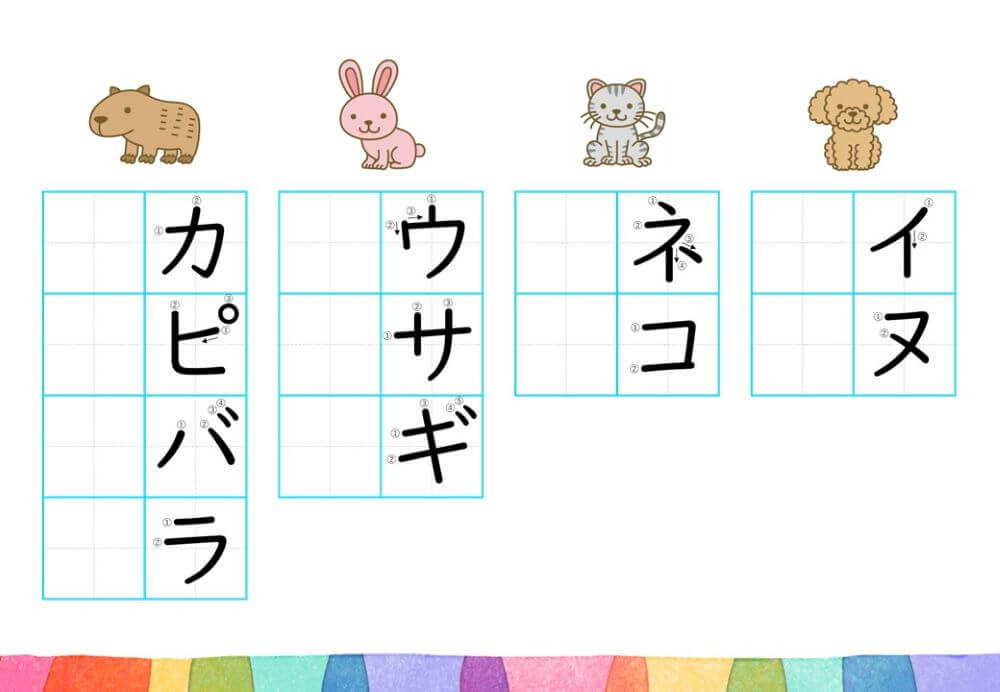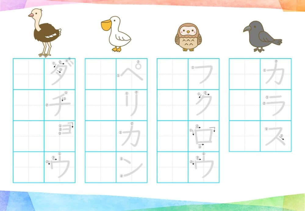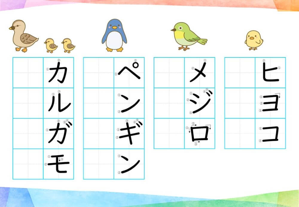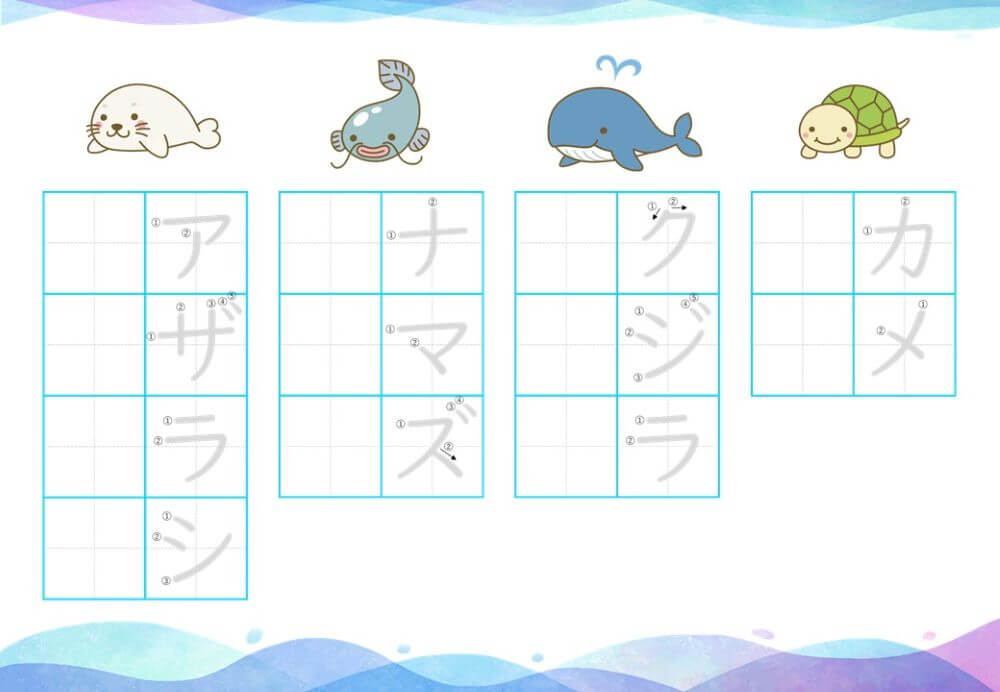左利きのお子さんでも書きやすいように、見本を右側に配置した『カタカナ練習プリント』を作りました。