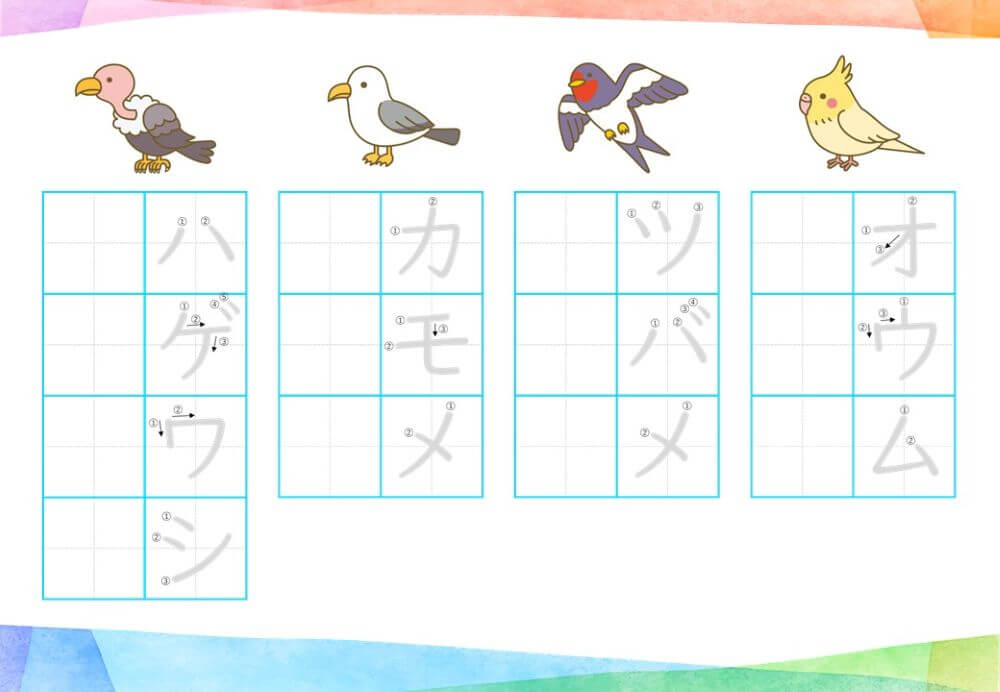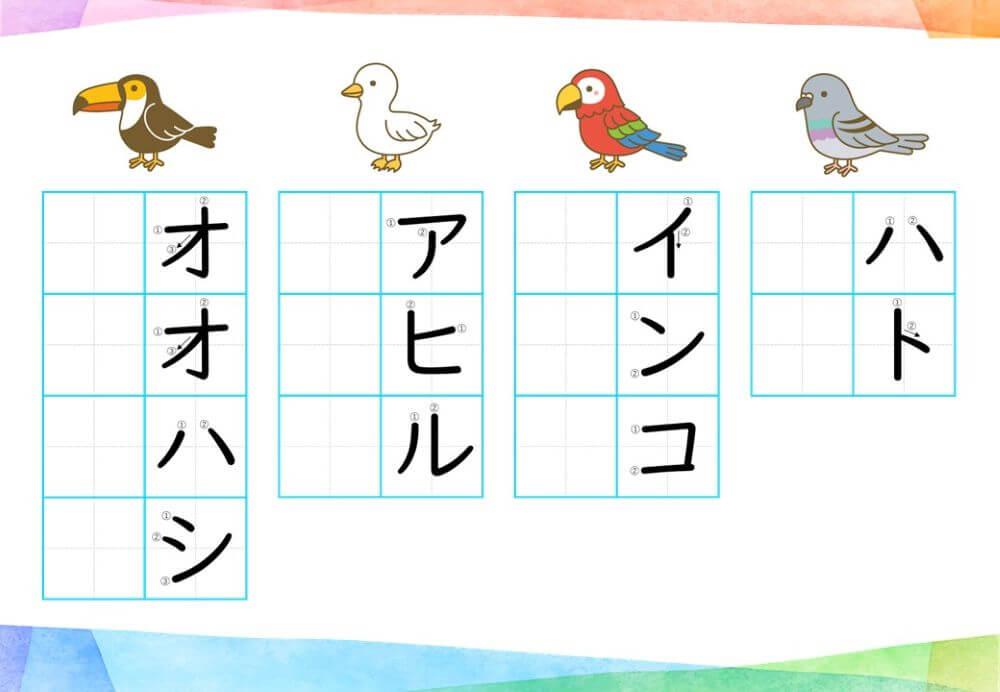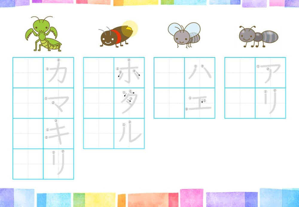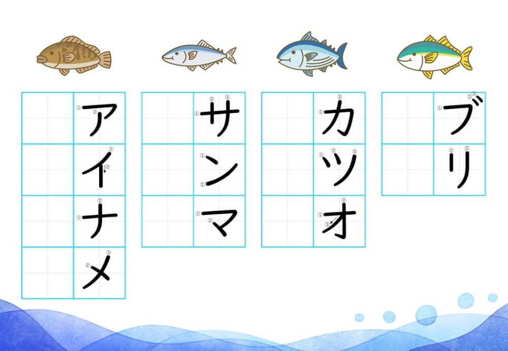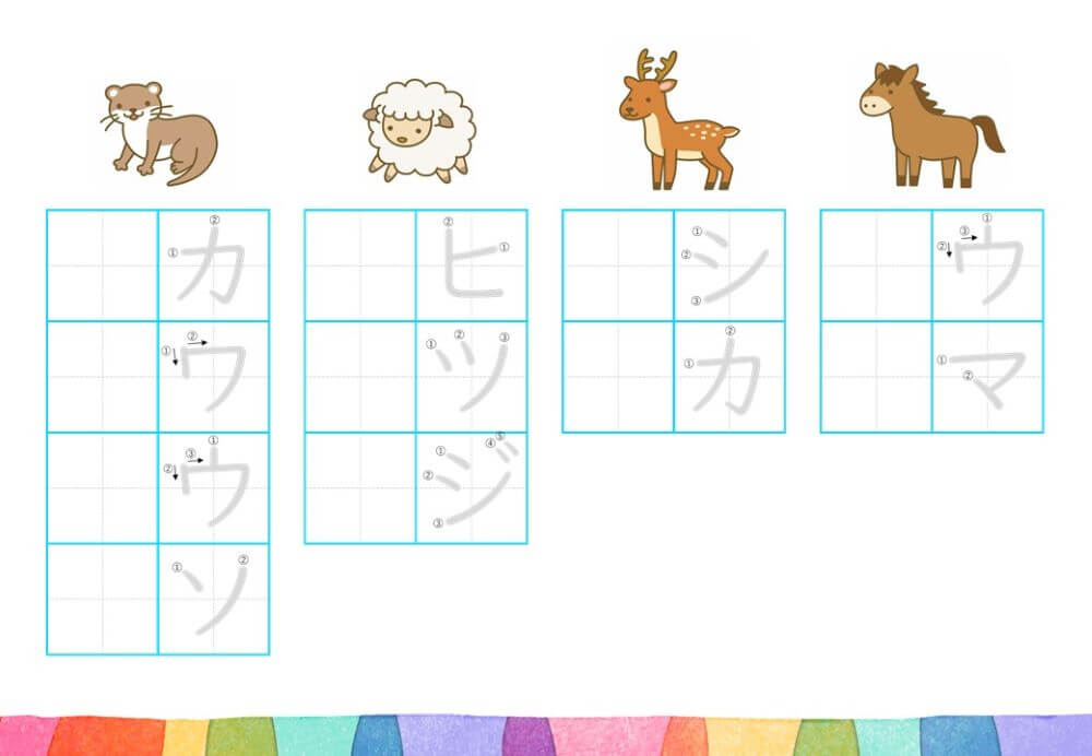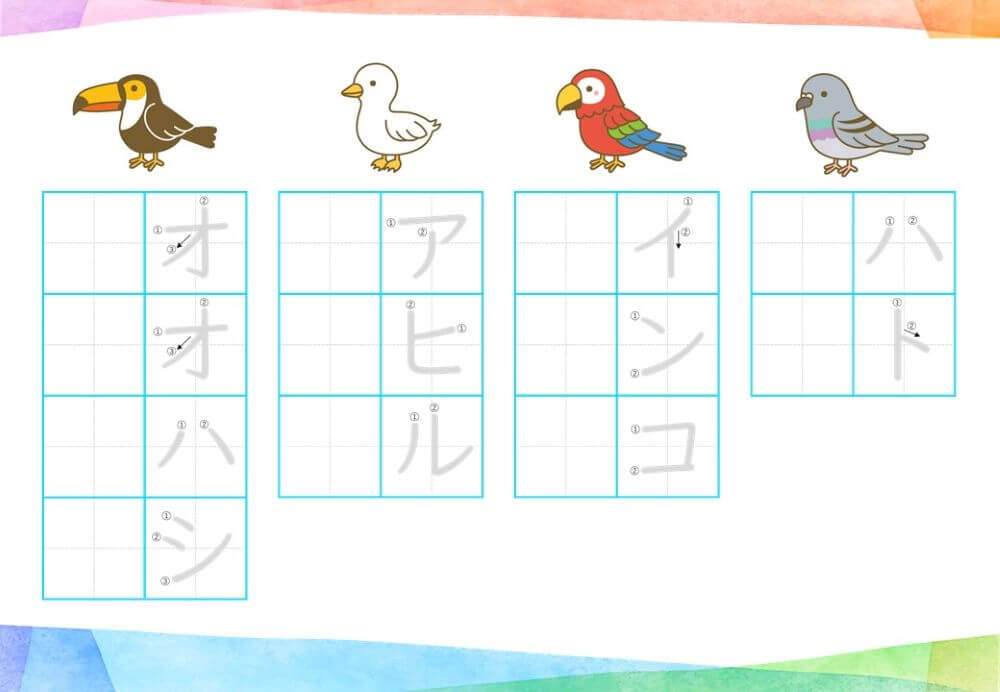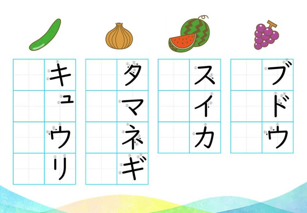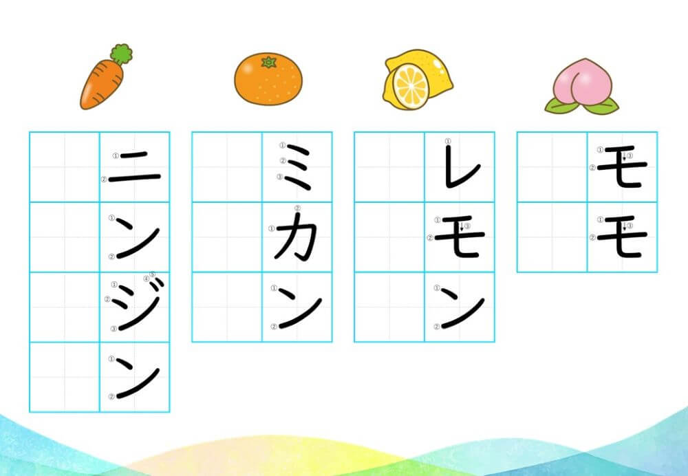左利きのお子さんでも書きやすいように、見本を右側に配置した『カタカナ練習プリント』を作りました。