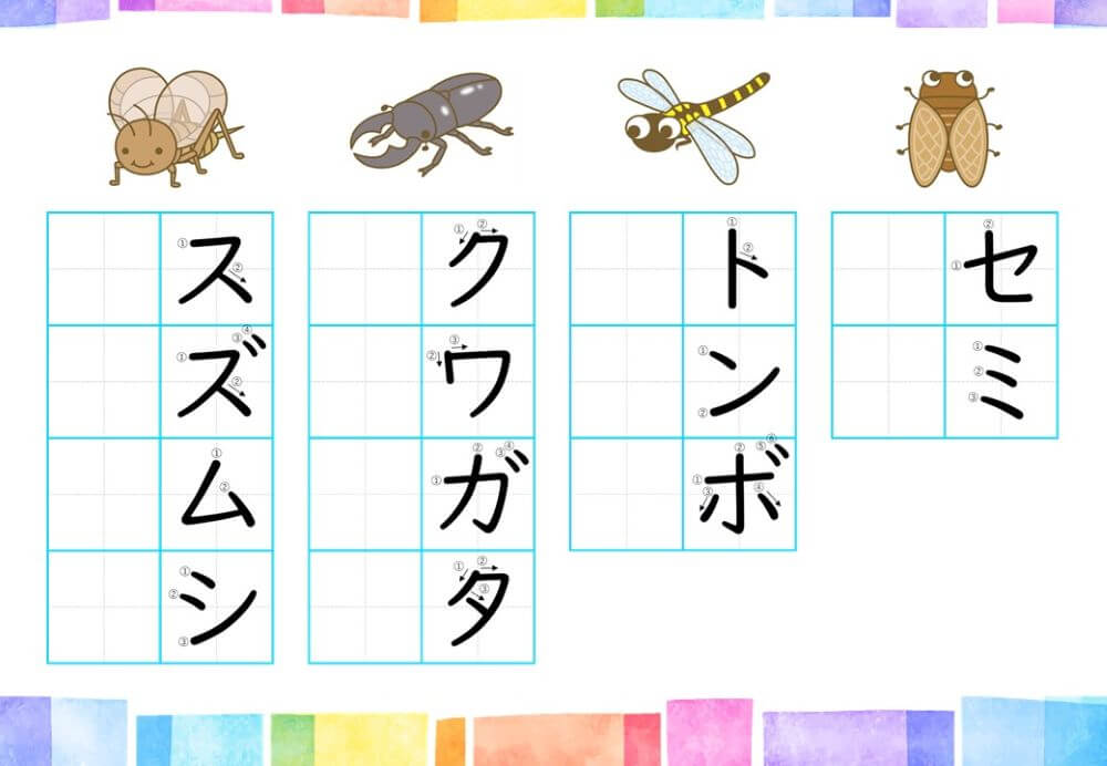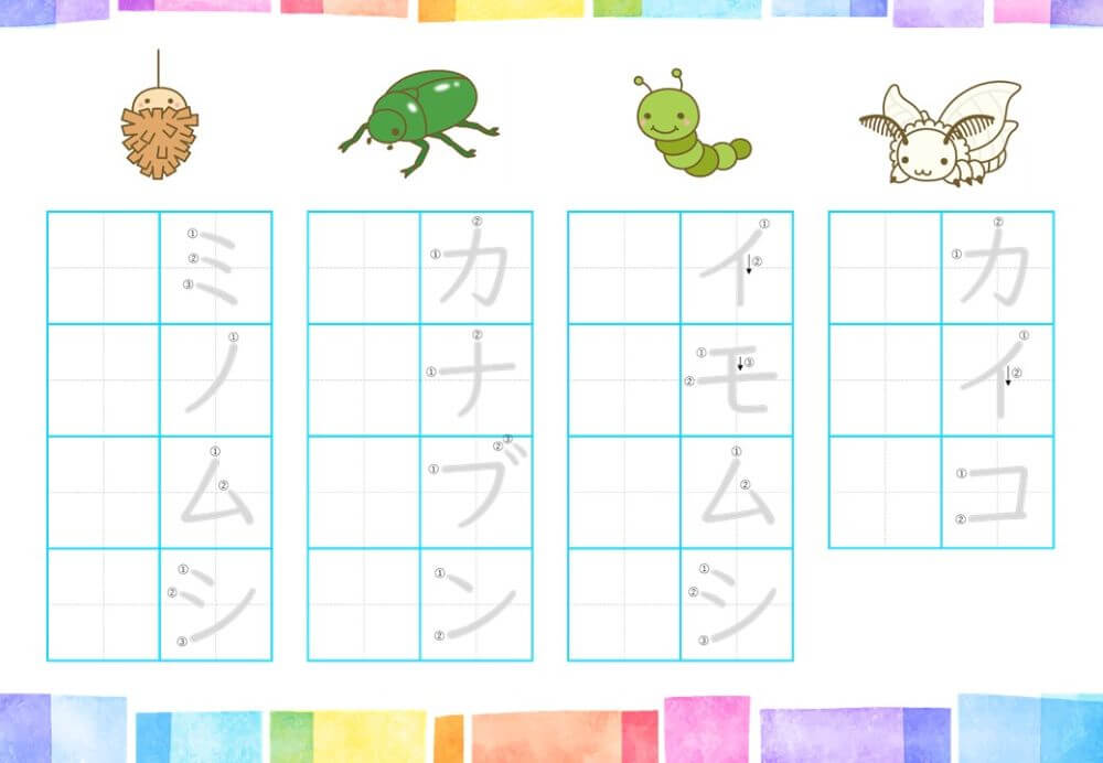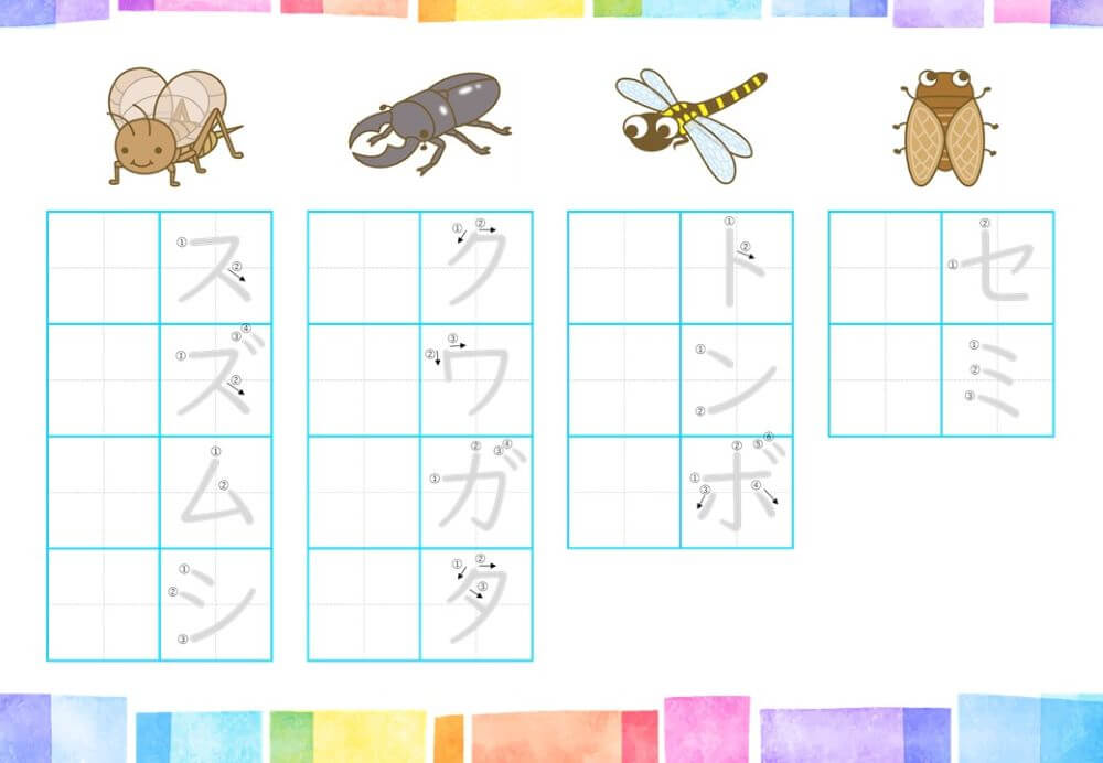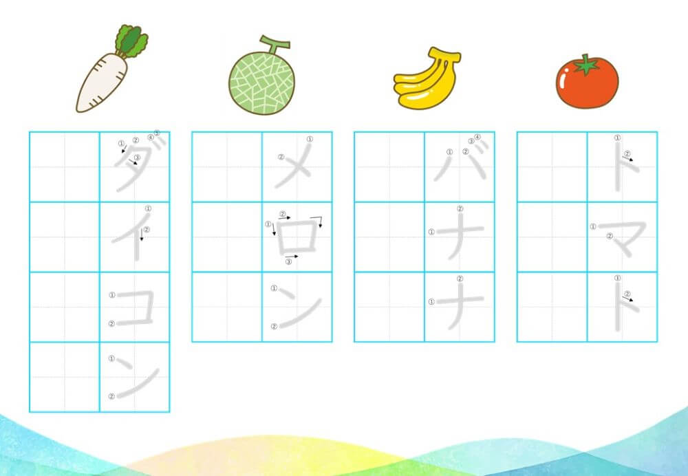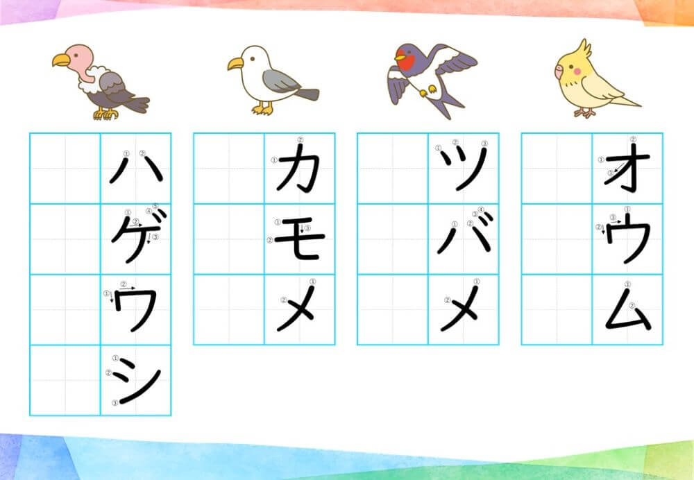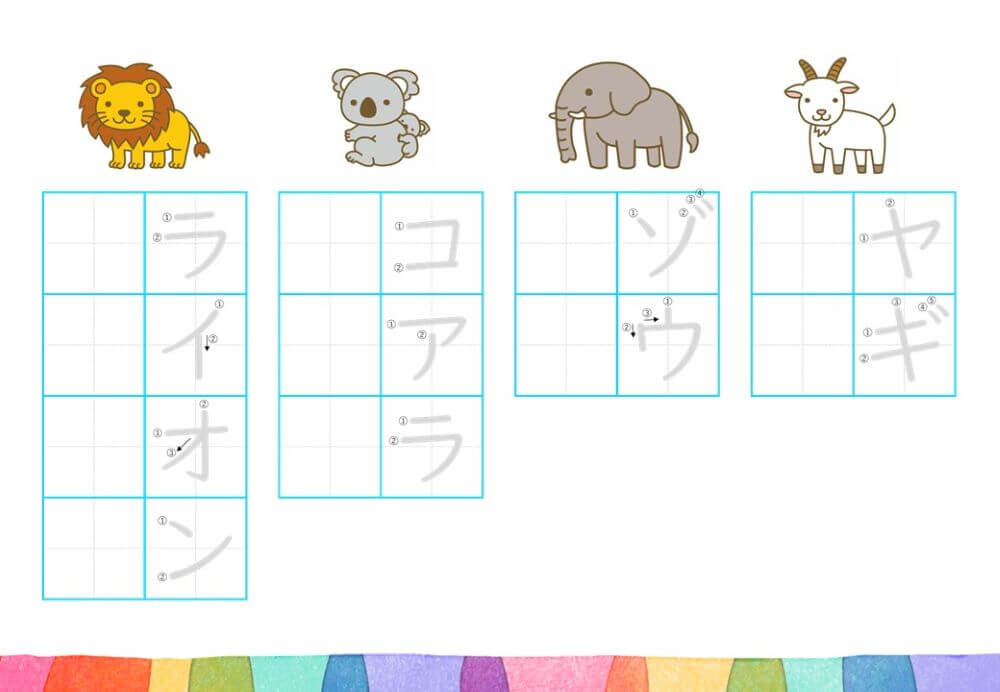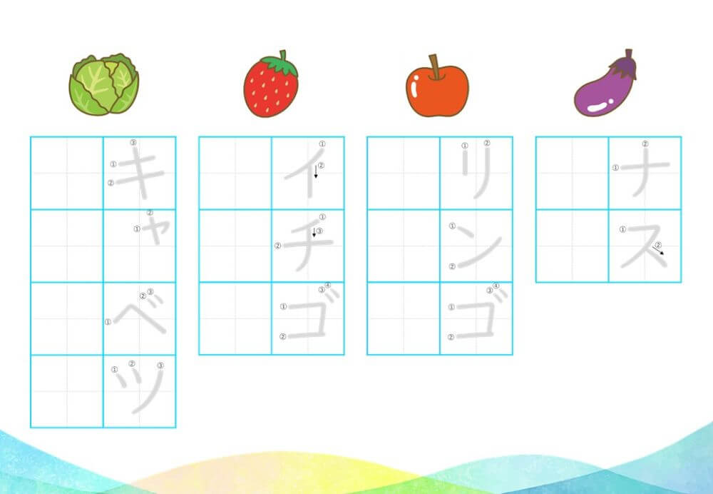 左利きのお子さんでも書きやすいように、見本を右側に配置した『カタカナ練習プリント』を作りました。