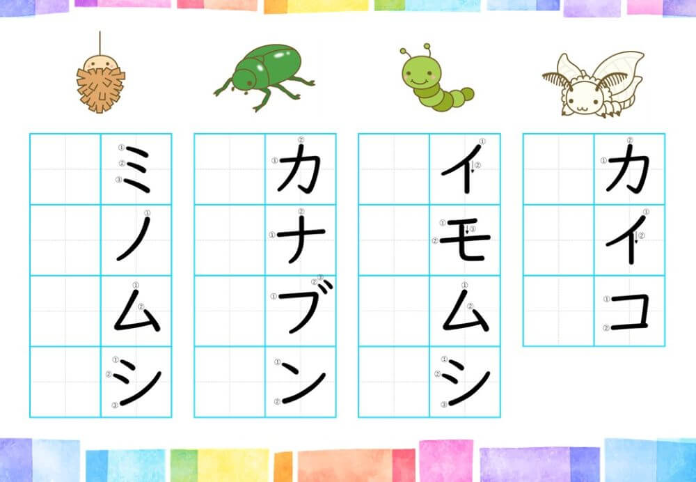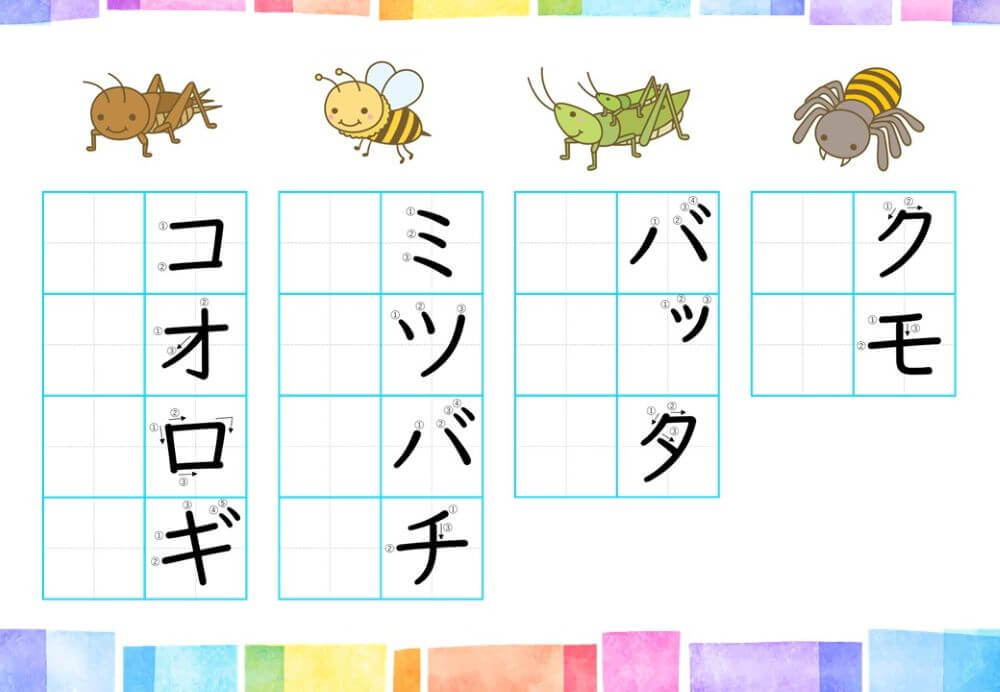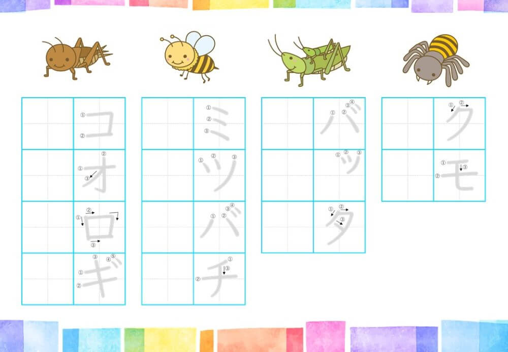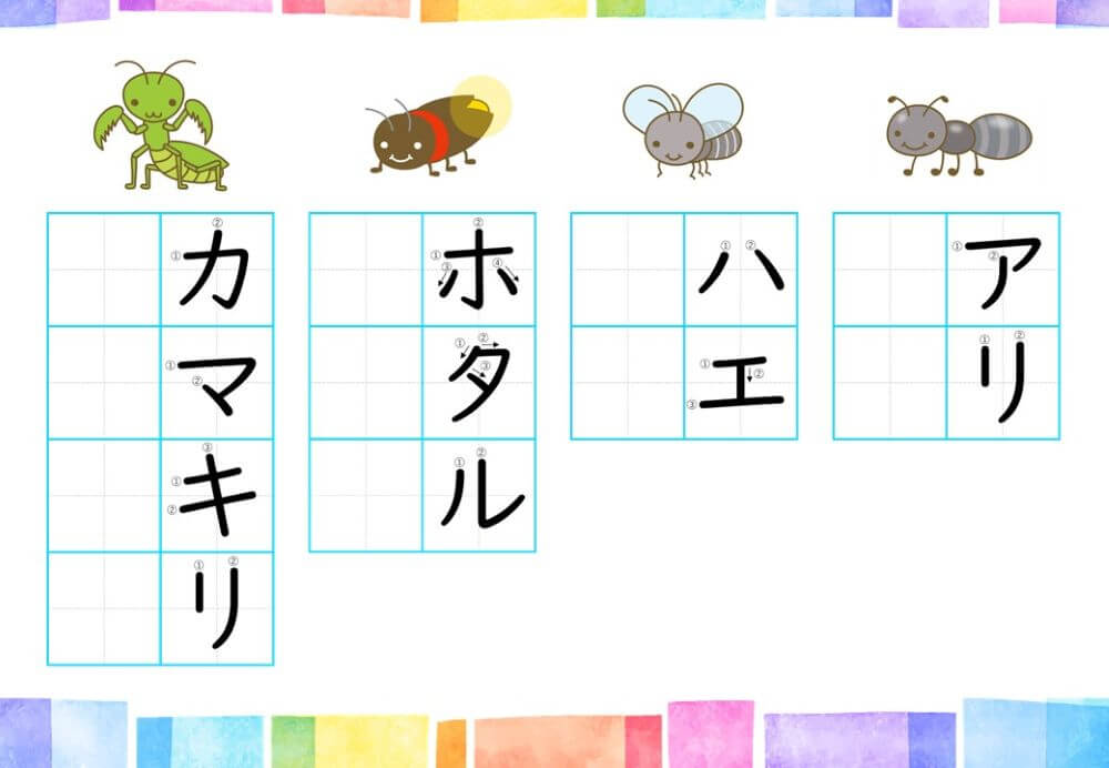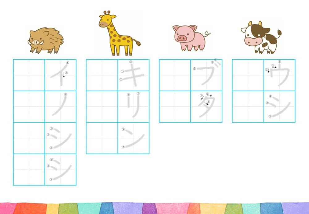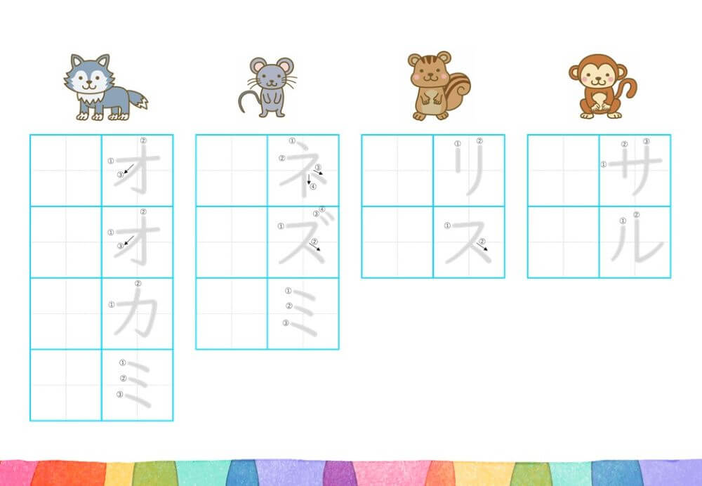 右側のお手本を見ながら書くプリントです。お手本には書き順もついています。