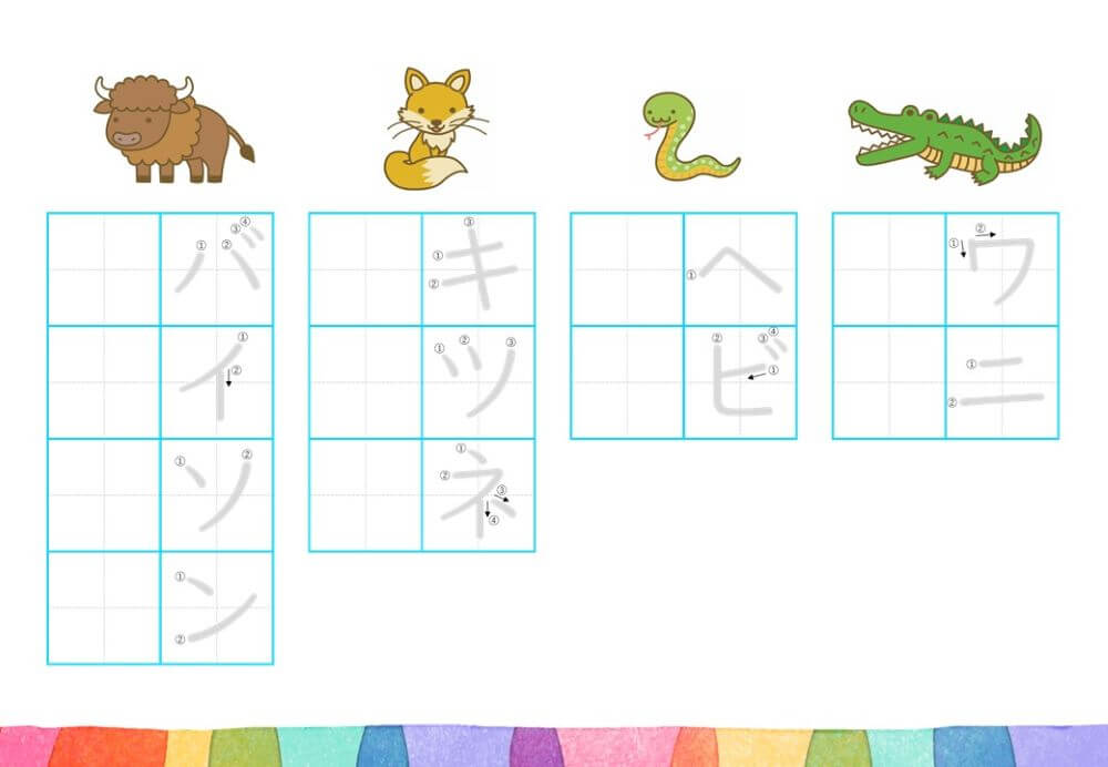 その他の『カタカナ練習プリント』は下のページをご覧ください。