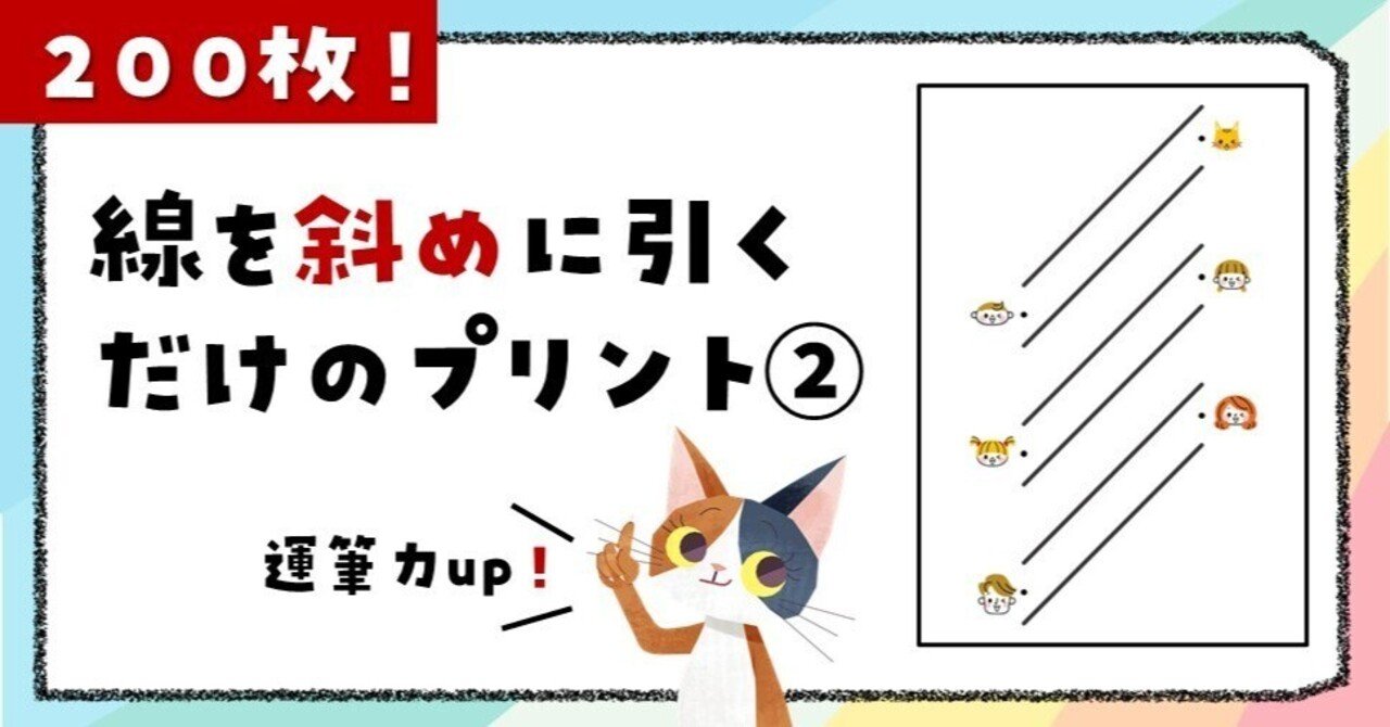 【運筆力up!】ただ線を右上に向かって引くだけのプリント200枚|黒猫