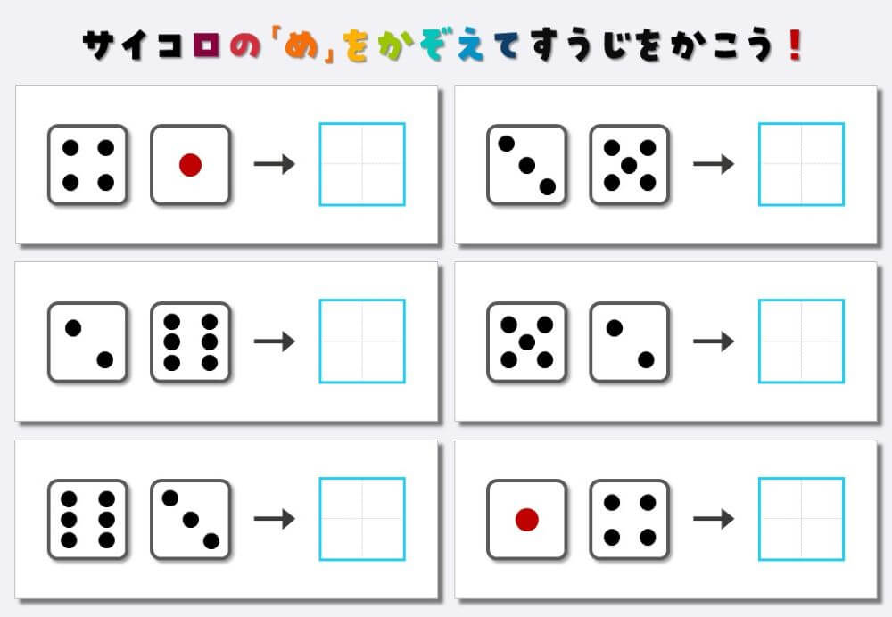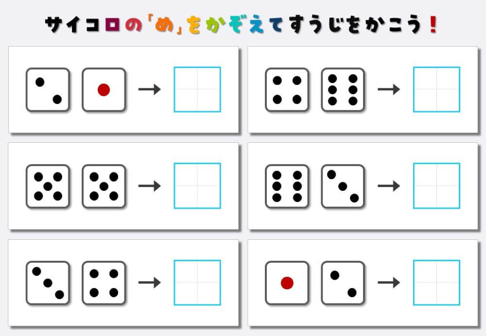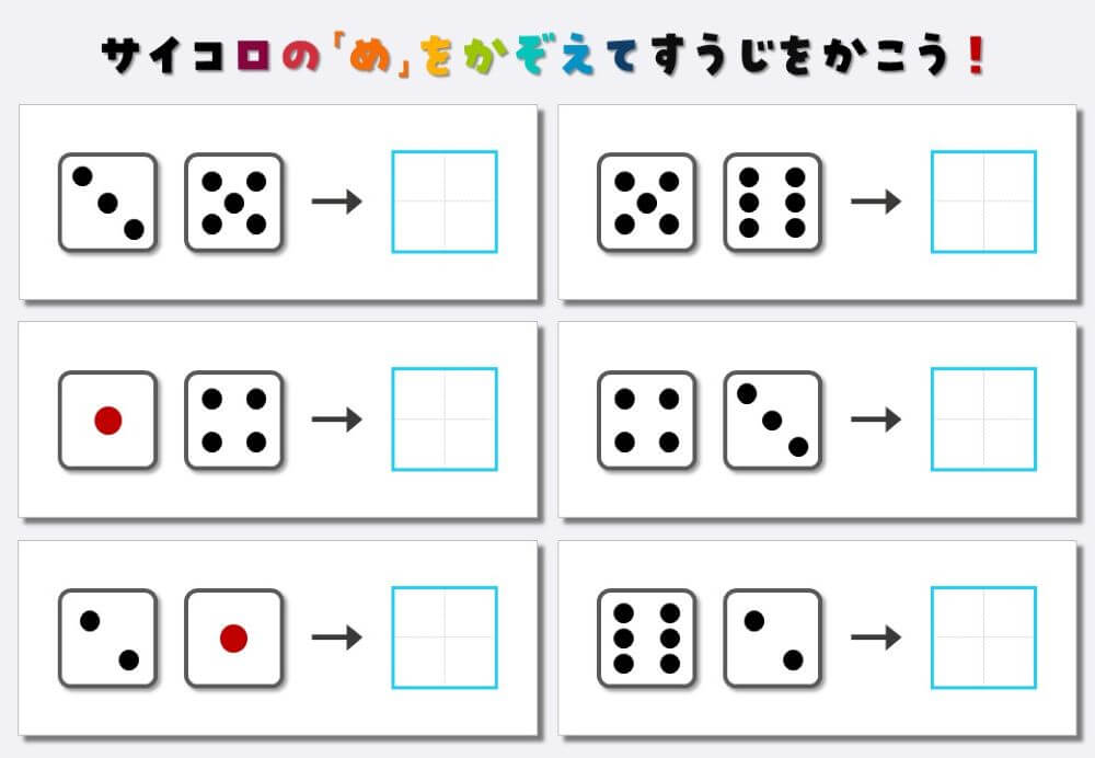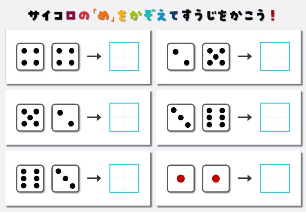 サイコロ2個の目と数字のマッチングプリント