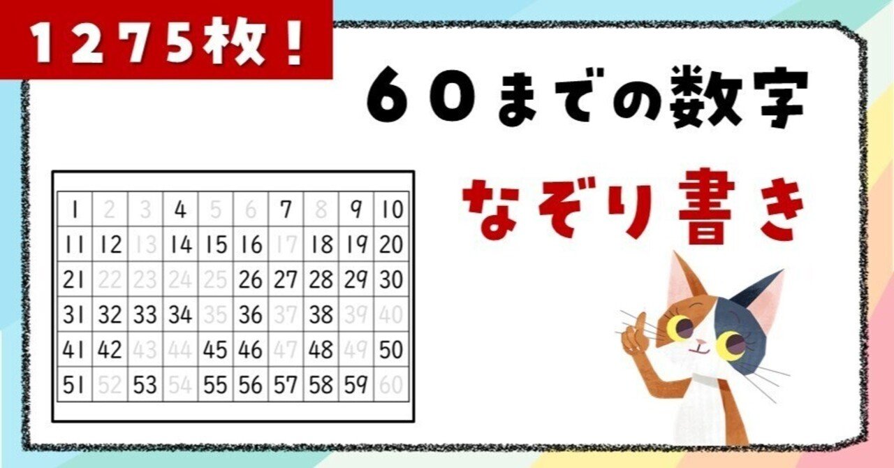 時計の学習に欠かせない「1から60までの数字」を楽しく身につけるために、今回は数字のなぞり書きプリントをご紹介します。